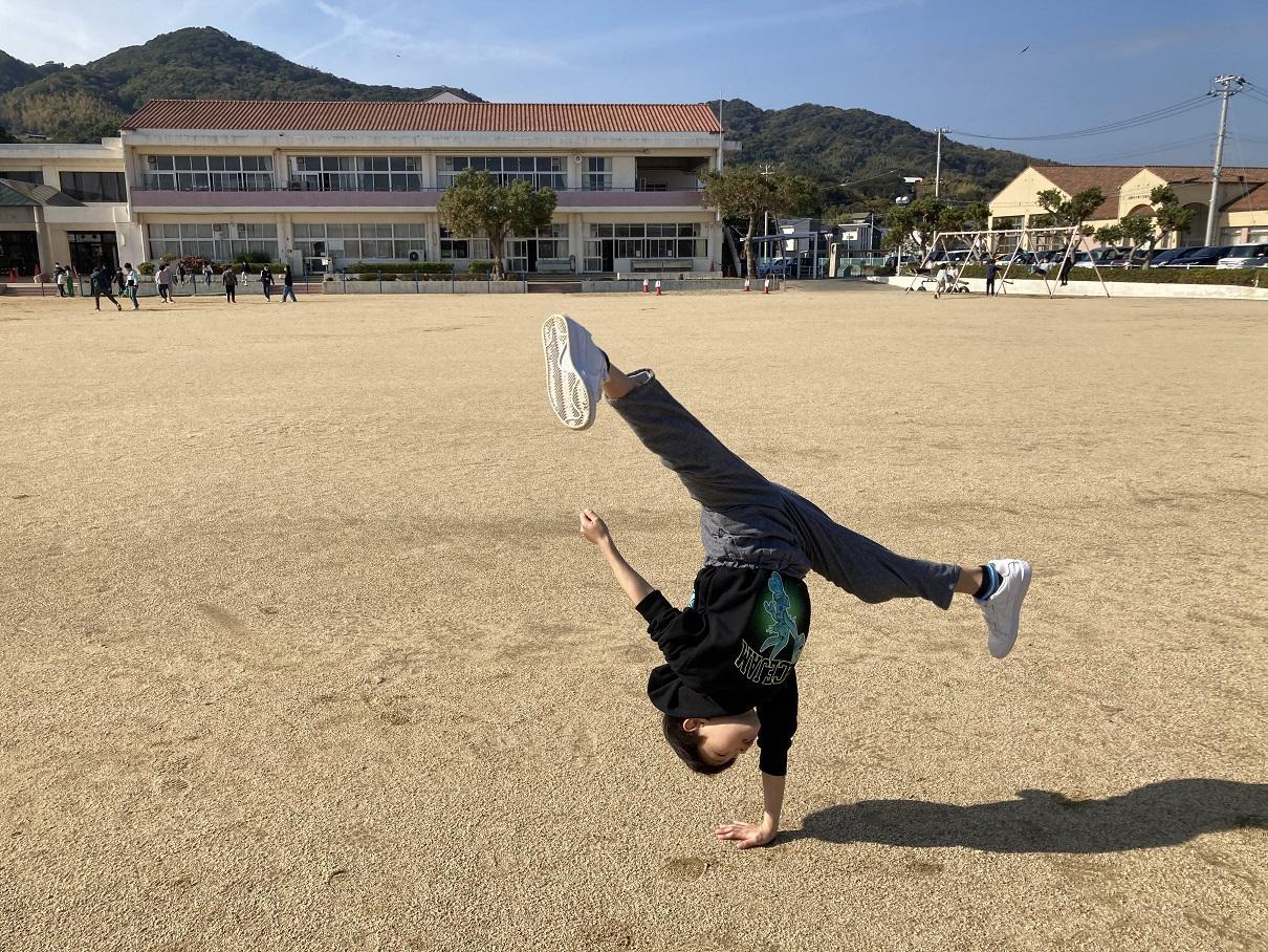 毎朝、登校の様子を見させていただいています。ある日、国道横の歩道を通って2人組の男児がやってきました。2人は時々ジャンプしながら歩いてきています。何をしているんだろうと思っていましたが、皆様は何だと思われますか?