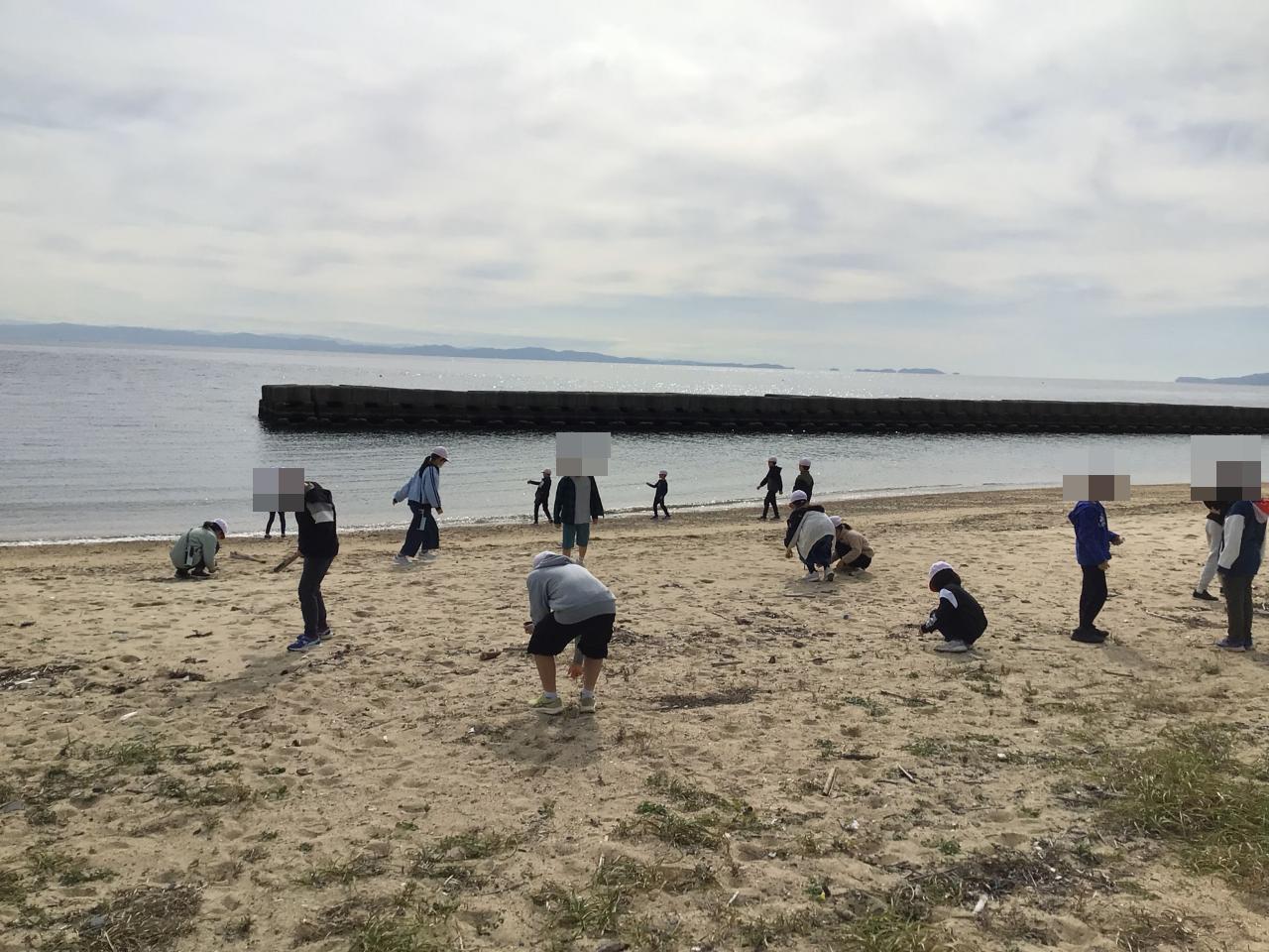 校区を歩き、海辺近くで、地域で盛んな産業「漁業」に関するクイズが出題されたり、砂浜でゴミ拾いをするゲームをしたり、地域を知る工夫が織り交ぜられたものでした。
