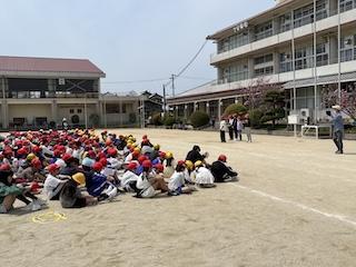 「1年間、いろいろな行事でこの縦割り班で協力していきましょう。」