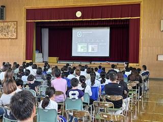 オープンスクールに引き続き、4・5・6年生児童が保護者の皆様と一緒に参加する教育講演会が行われました。講師にNIT情報技術推進ネットワーク株式会社 筒崎眞美様をお招きし、インターネットやスマートフォンに潜む危険性、SNS等における適切な使用について具体例を示しながらお話しいただきました。保護者の皆様にも、お子様が利用する機器の特徴やアプリの盲点、犯罪に巻き込まれないための注意点などを改めて考えていただけたことと思います。ご家庭でもぜひ話し合ってください。