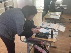 冬休み明け早々の実施に、まだまだ「休み気分が抜けないのでは」という心配もありましたが、そんな心配は全くの杞憂でした。どの教室もピンと張りつめた緊張感に包まれ、どの子も真剣な眼差しで筆を走らせていました。