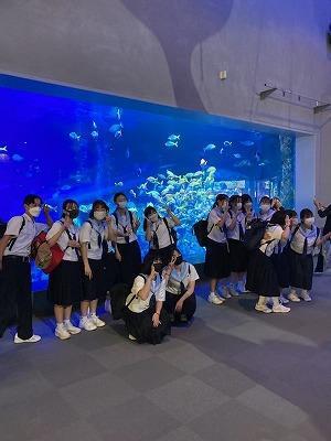 約1200種もの生き物が飼育され、どのエリアも迫力満点でした。事前に行き先を班で相談して決めていたので、スムーズに行動できていました。それぞれ、アシカのショーやジュゴンを見たり、楽しそうにお土産を選んだりしていました。(お土産の爆買いタイムになっていました)