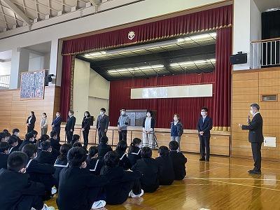 4月7日(木)、子ども達が元気に登校し、着任式と始業式が行われました。今年度は校長先生をはじめ、新しく9名の先生方が着任される予定で、今日はその内6名の先生方が着任されました。始業式では、校長先生から「一年後の自分の理想の姿を想像し、それに向けてしっかり目標を立てましょう」とのお話がありました。