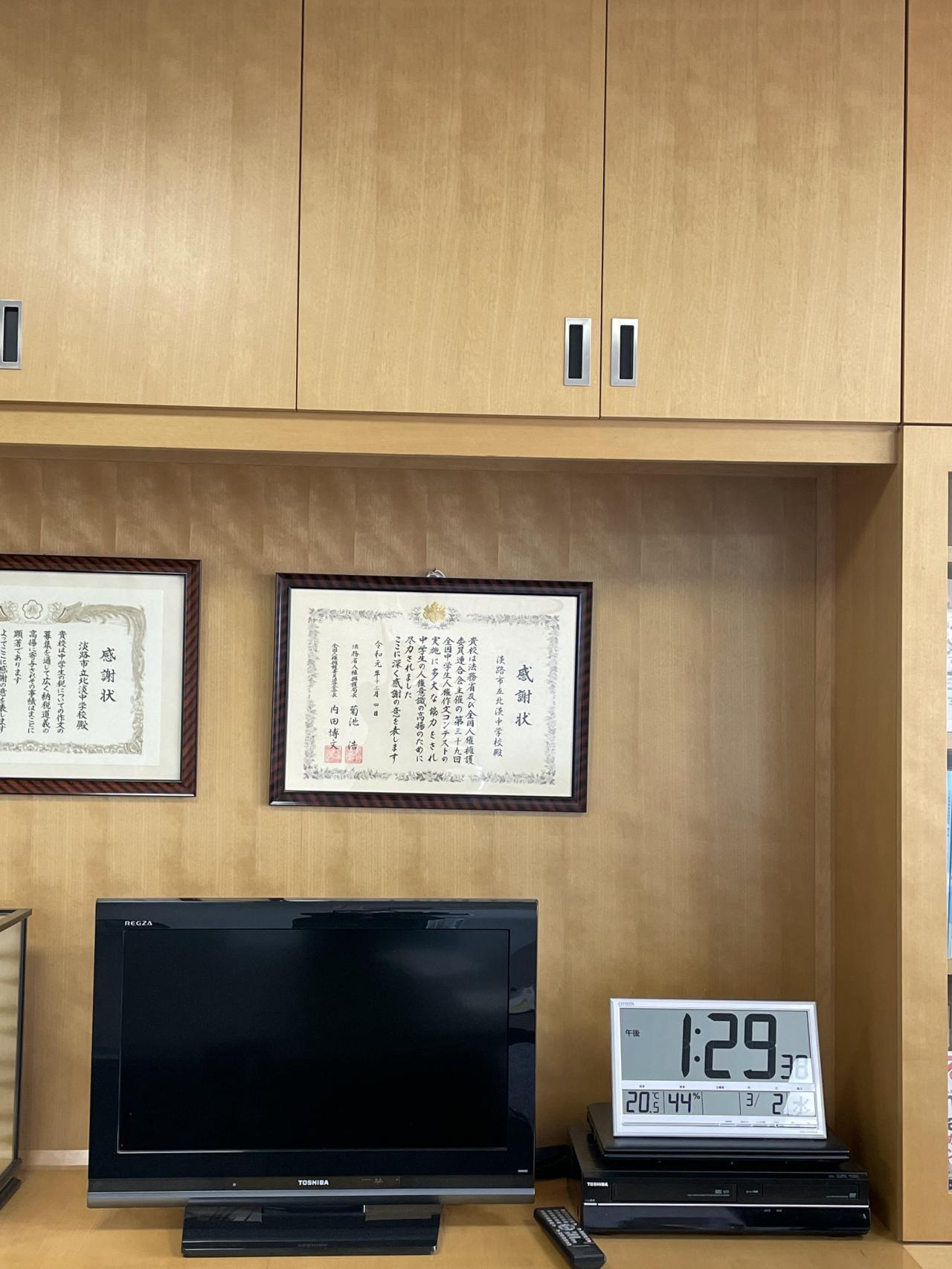 置き時計は校長室で、学校へのご来客の方をお迎えいただく役として、飾らせていただきます。