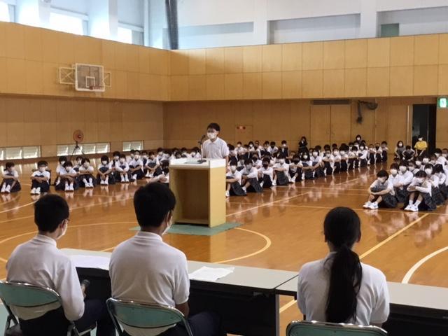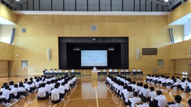 本日(7月13日)の6校時に、生徒総会を体育館で行いました。生徒会役員を中心に生徒たちが議事を進行します。