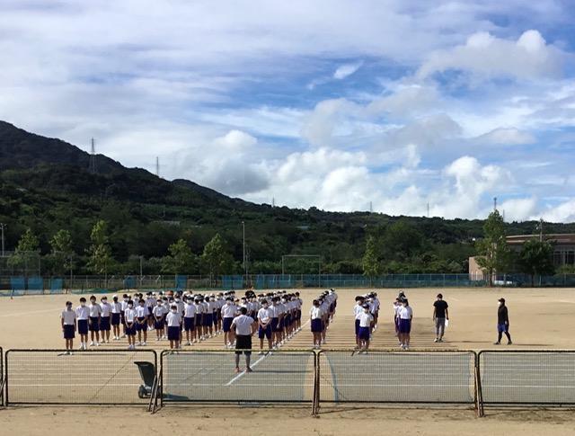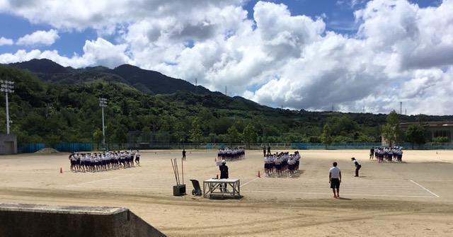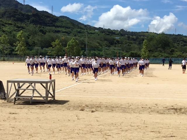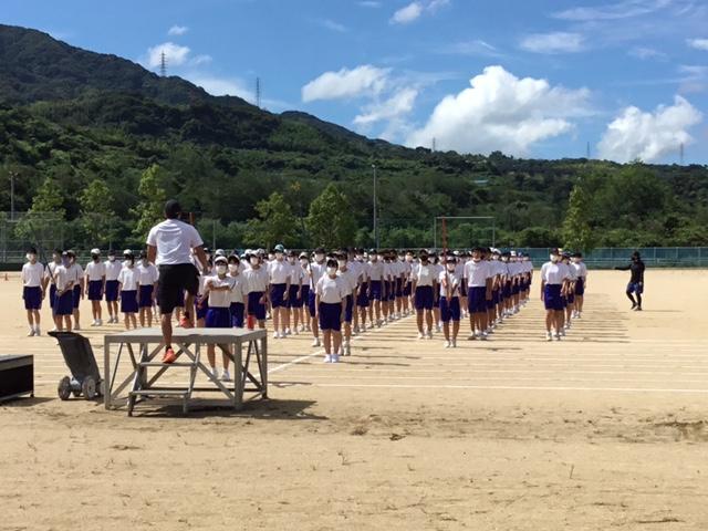 9月10日(土)の体育大会に向けて、全校生での練習が始まりました。(=゚ω゚)ノ