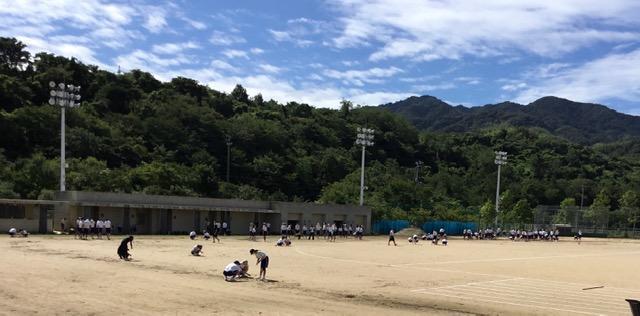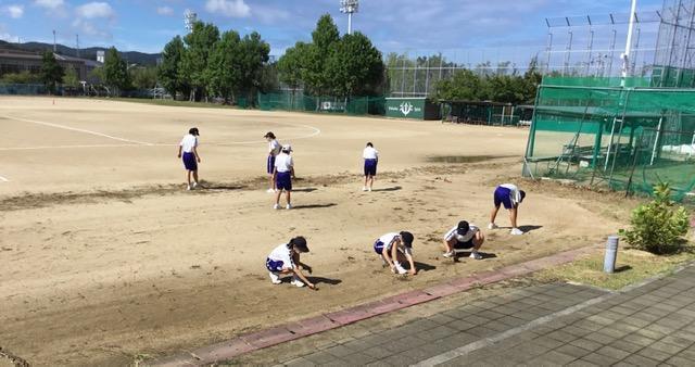 1時間目の途中からは、グラウンドに移動して、みんなで協力してグラウンド整備をしました。暑い日差しの中ですが、みんなよく頑張ってくれています。