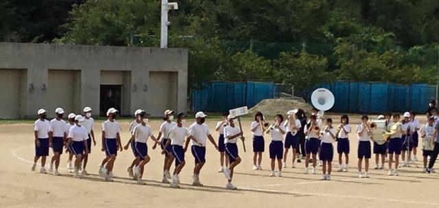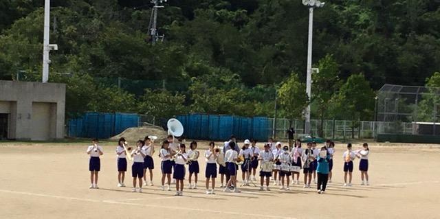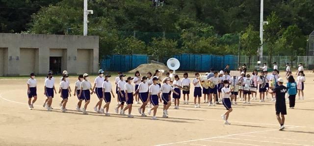 本番と同様に、吹奏楽部の演奏に合わせての部活動行進です。