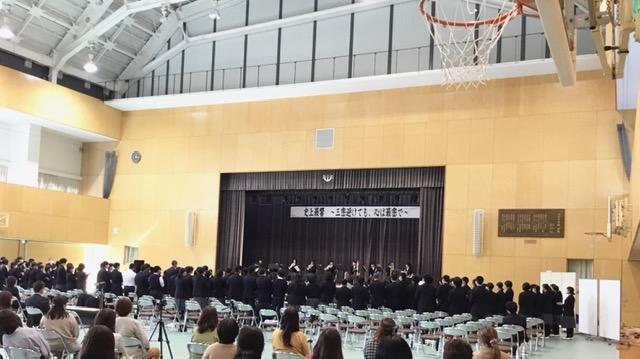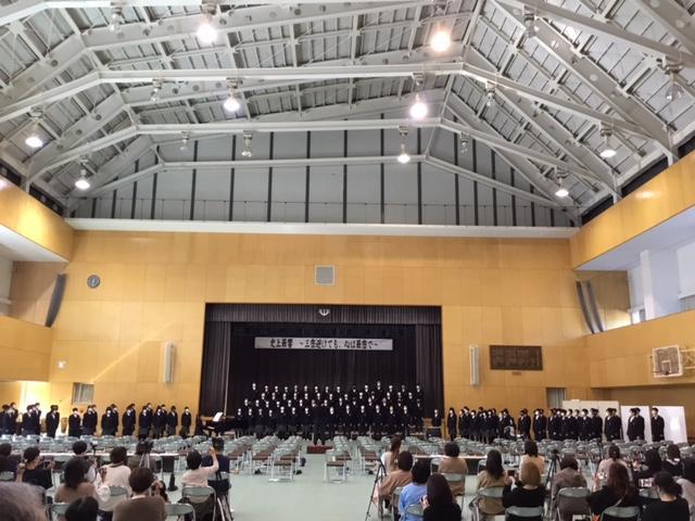 2曲目は、「家族になろうよ」です。生徒たちの元気いっぱいの歌声を聴き、会場全体が「家族」に思いをはせ、「幸せ」な気持ちになりました。