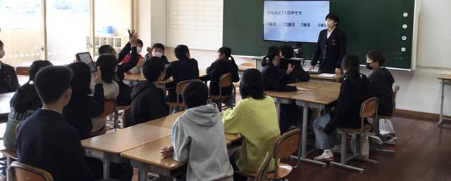 その後は、4グループにわかれて小中交流会を行いました。小中交流会は、2年生が色々と趣向を凝らしたクイズによる「学校紹介」を行いました。どの教室も、とても楽しそうな雰囲気でした。