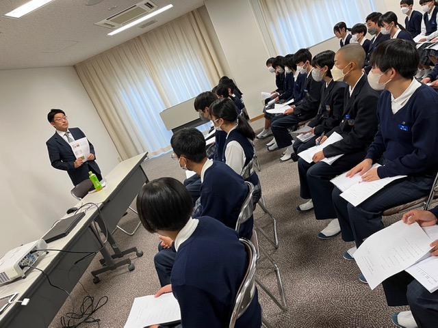 ホテルニューアワジ 代表取締役社長 木下 学 さんを講師としてお迎えし、トライやるウィークの事前学習を行いました。