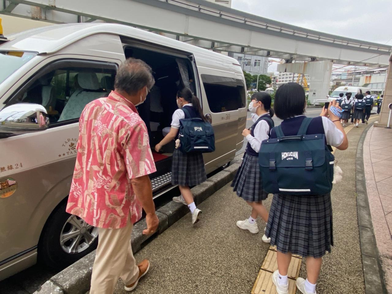 二日目は、タクシーで班別行動です。美ら海水族館を見学した後パイナップルパークや道の駅かでな等に向かいます。