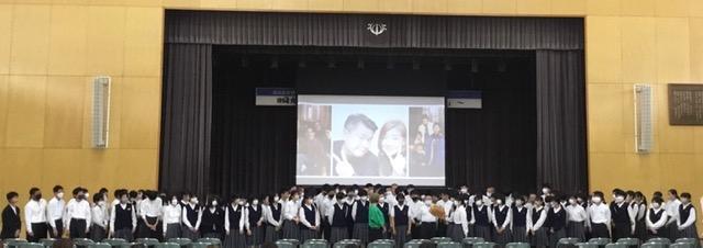 PTA教育講演会後には、全校生徒との写真撮影を行いました。全校生徒からは、生徒代表からのお礼の言葉とともに花束を送りました。
