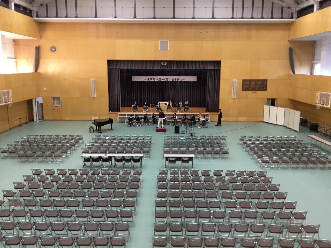 会場準備は万端です。舞台では、ちょうど吹奏楽部がリハーサルをしていました。