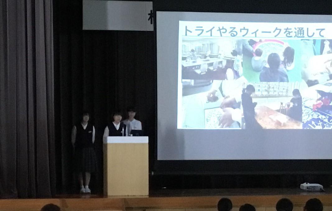 本日(6/21)、お世話になった事業所の方々・保護者の方々・1年生を迎え、トライやる・ウィーク発表会を体育館にて実施しました。