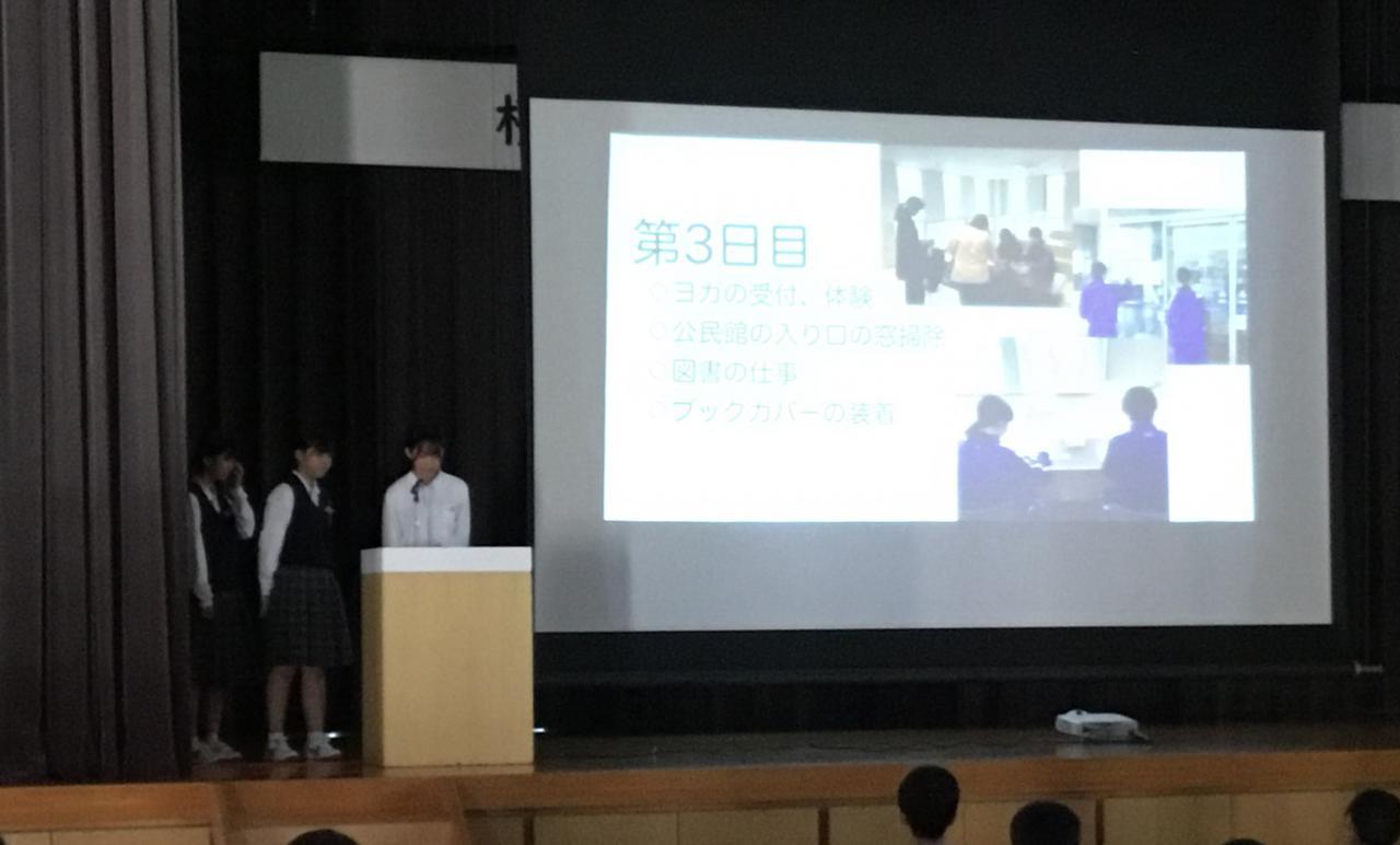 さすが北淡中2年生です。5日間の活動を通して感じたことや身につけたことを、写真や動画、クイズを交えて堂々と発表することができていました。