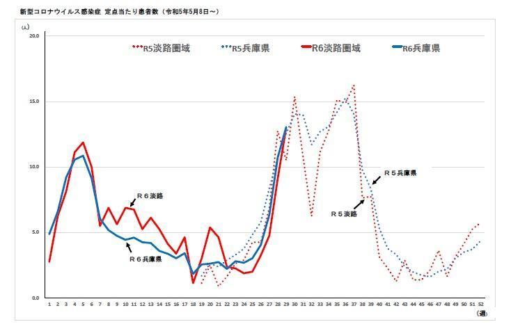 島内の新型コロナウイルス感染症の患者発生が、裏面の図(下に付けています)に記載の通り、急速な増加に転じました。一定点医療機関当たりの一週間の報告件数が、1~4件台で推移していたものが、ここ2週間、9 件台、13 件台と急増しており、10 を超えるのは、インフルエンザでは注意報レベルです。