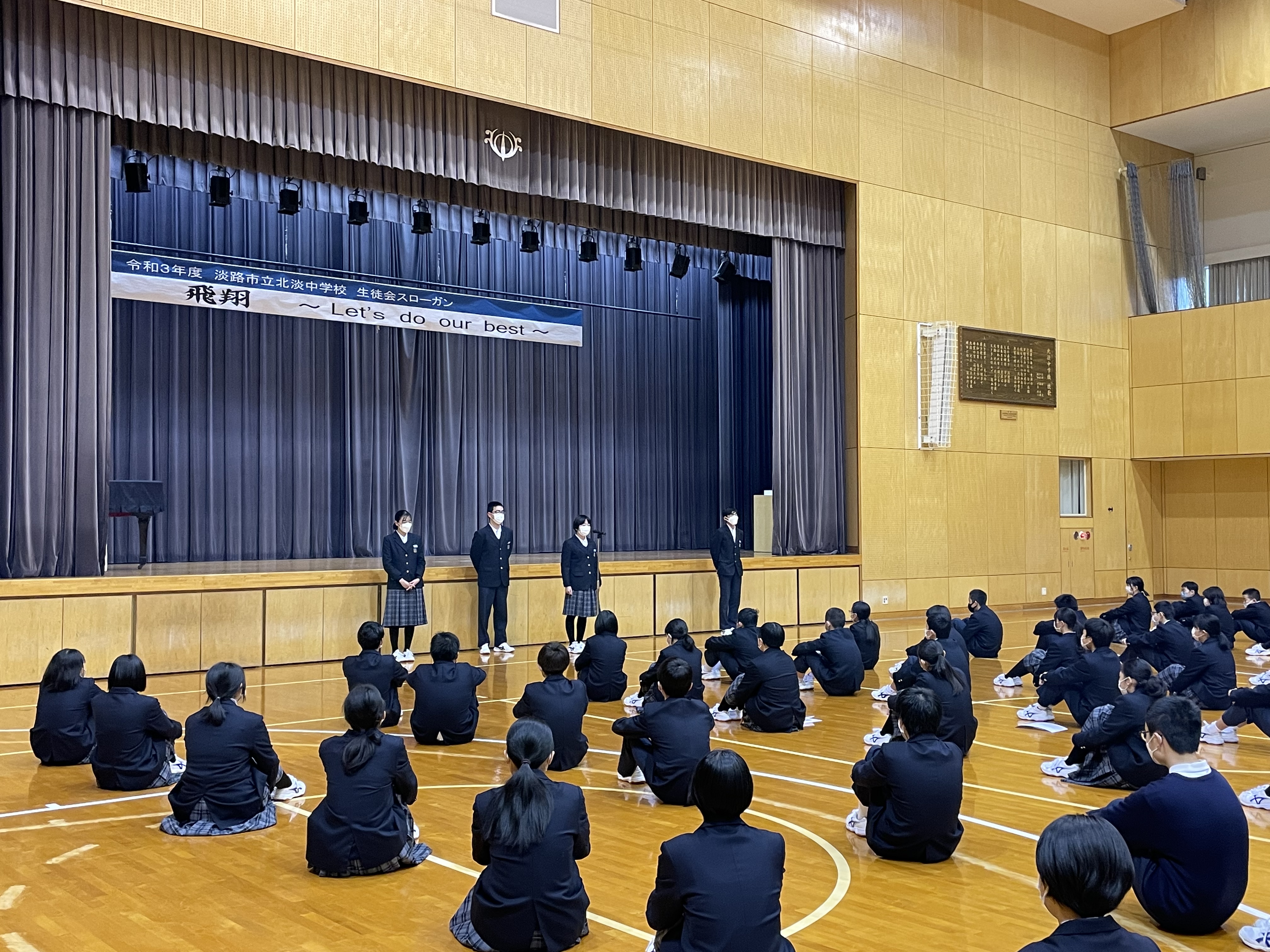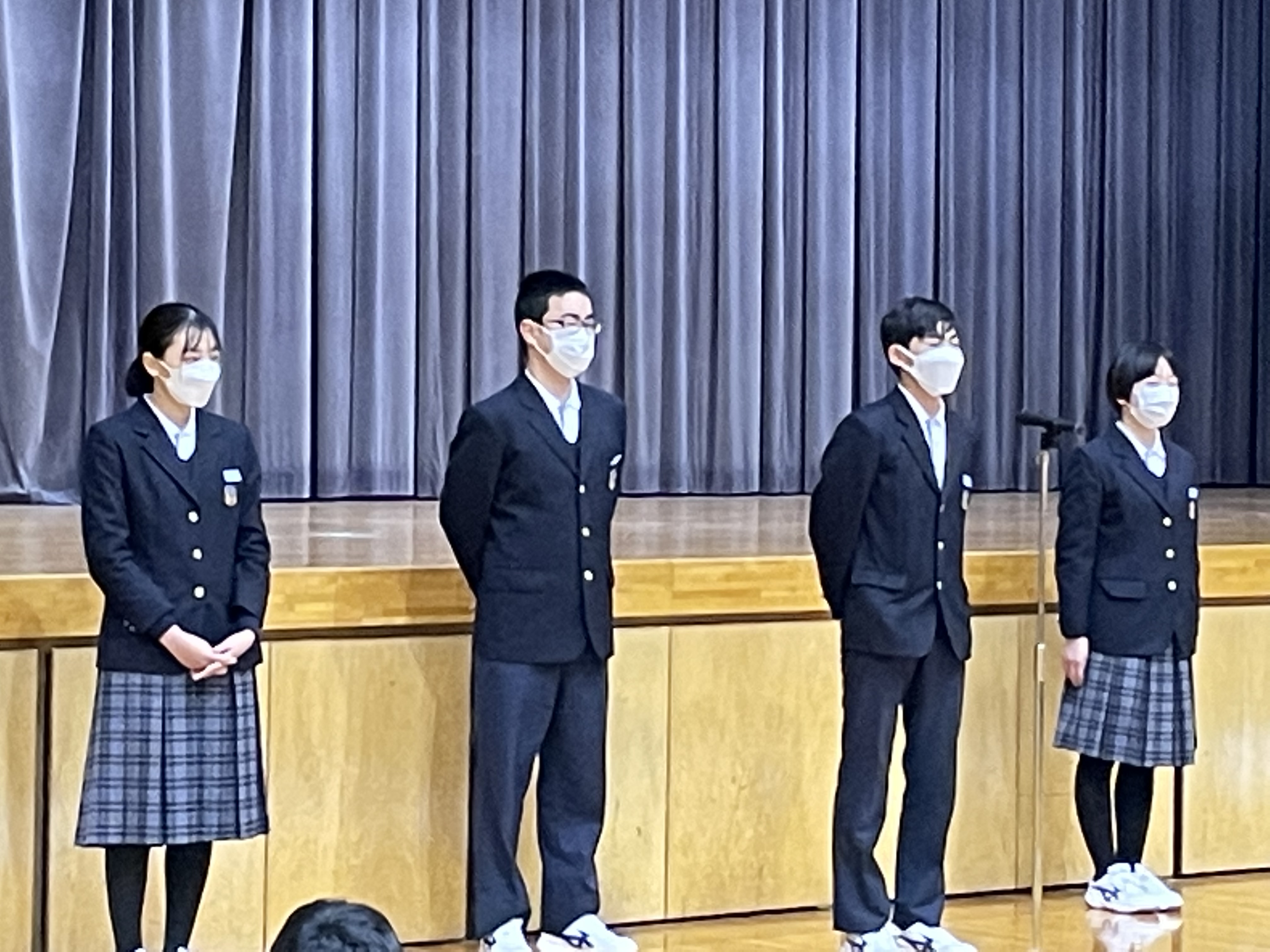 体育館で始業式を執り行ったあと、新生徒会本部役員の任命式と旧役員の退任式がありました。挨拶をした旧役員はこの1年間の協力へのお礼を全校生に述べるとともに、生徒会活動を通して成長した自分を振り返り、丁寧に語っていました。本当に1年前とは大きく異なる話ぶりと深みのある内容で、後に続く後輩たちに目には見えないバトンを立派に渡していました。1年間、本当にご苦労様でした。