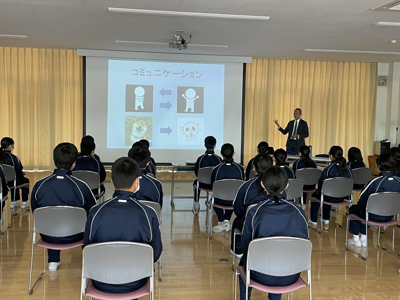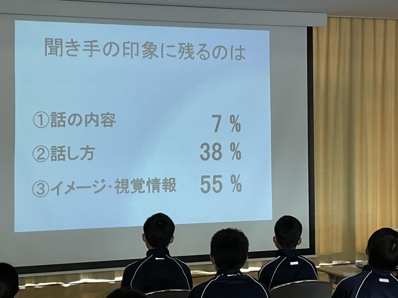 これはトライやる・ウィークに向けての学習です。社会に出る前に心がけるべきことの一つとして、良いコミュニケーションや良い人間関係づくりについて学びました。