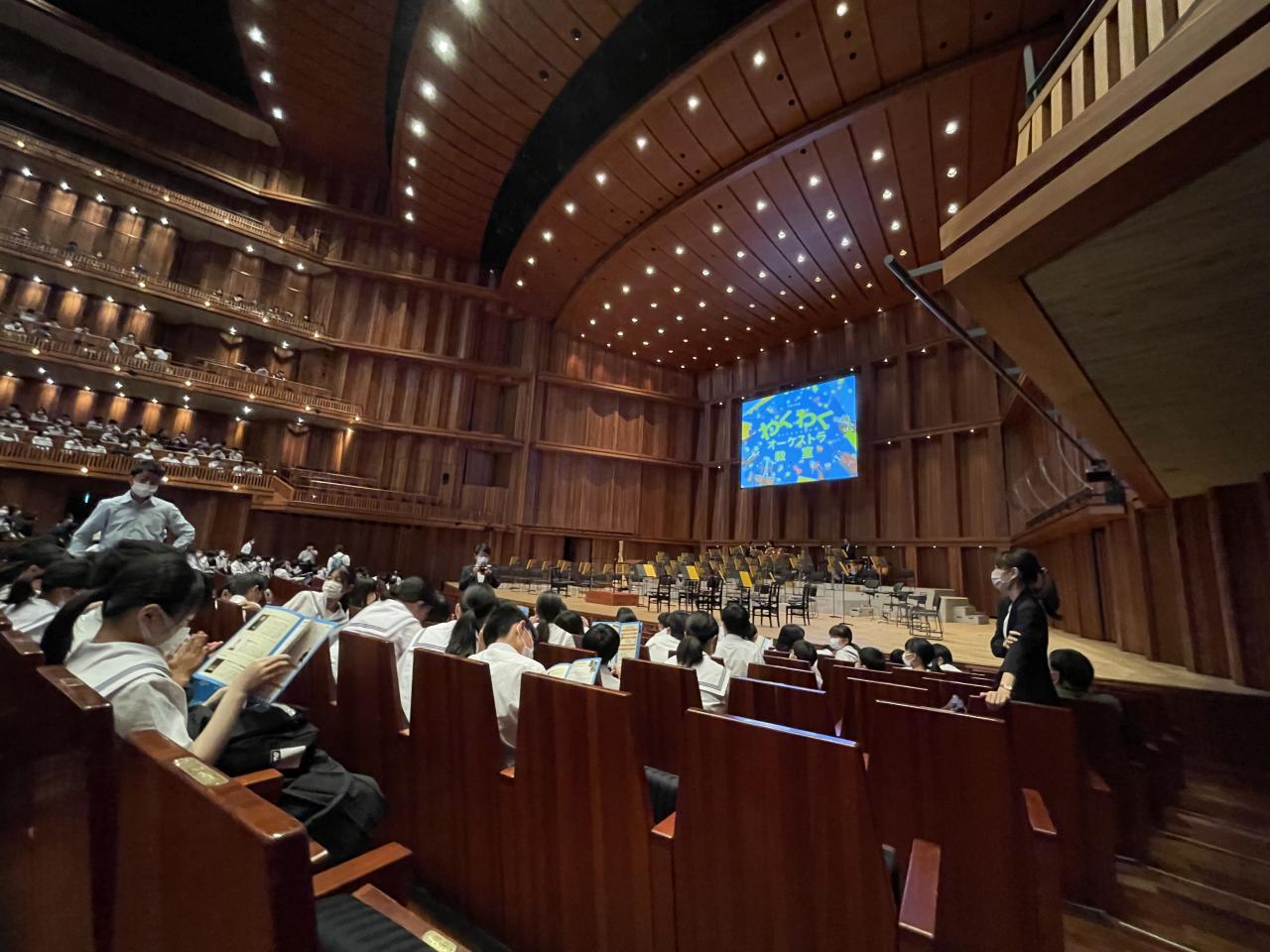 昨日、1年生は西宮市にある県立芸術文化センターへ出かけ、県教育委員会が実施する「わくわくオーケストラ教室」に参加してきました。これは毎年、県下の中学一年生がプロのオーケストラ演奏を体験することを目的に開催される行事です。