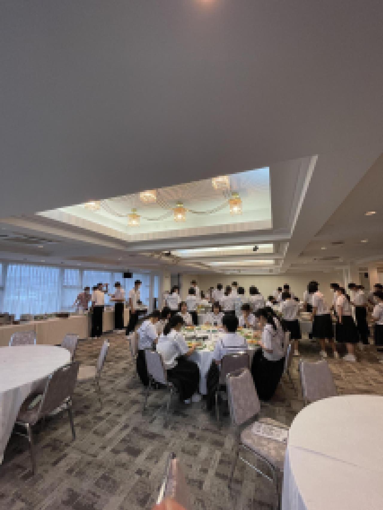 朝食が始まりました。みんな血色も良く、「おなかペコペコ!」といいつつポテトフライなどをパクリ。どうして沖縄ならではの料理に手をつけるのではなく、ファストフード系を選ぶのか〜と、気になる生徒もいます。でも、もりもり食べる食欲に、今日一日を楽しむぞという心が読み取れます。いい1日でありますように。