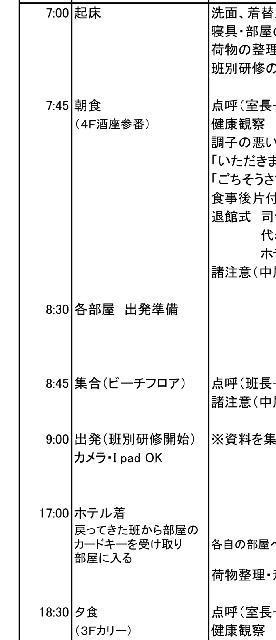 天気が非常に心配なスタートでしたが、雨の止み間も多くあり、楽しみにしていた活動を順調にこなし、先ほど、すべての班が満足げな顔をして、手に手にお土産を持って、ホテルにやってきました。