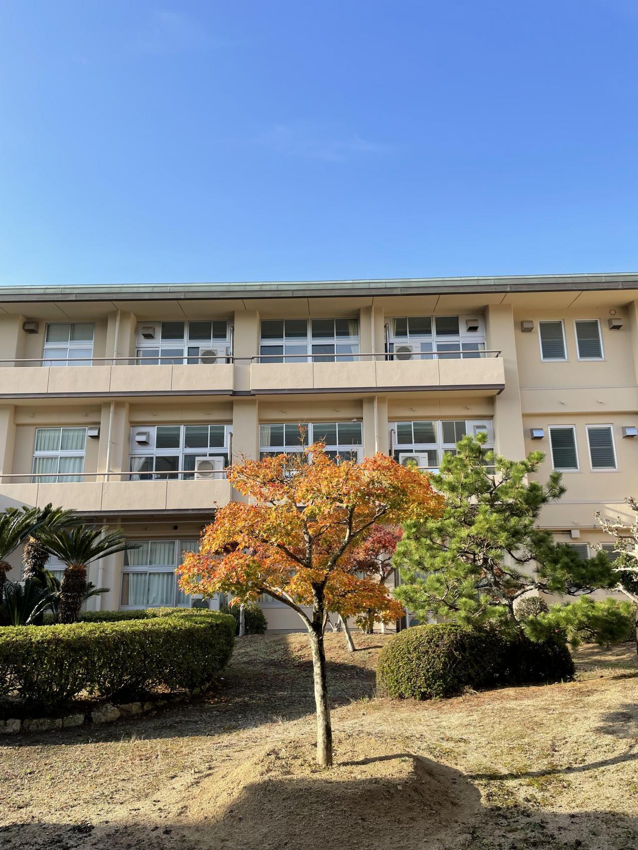 12月8日、一宮中の中庭では太陽に映えた美しい紅葉が輝いています。