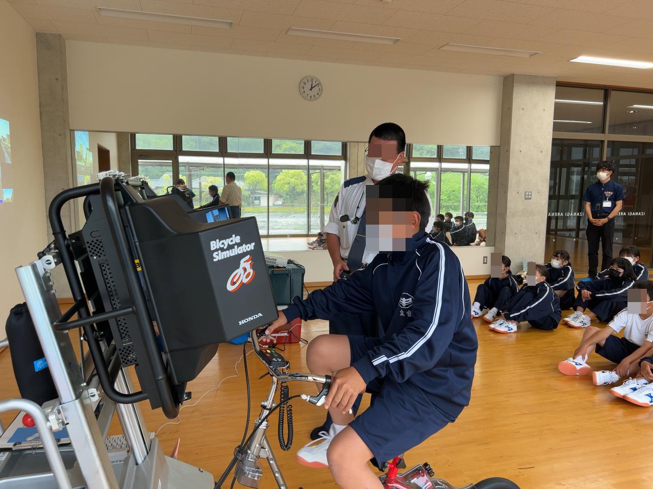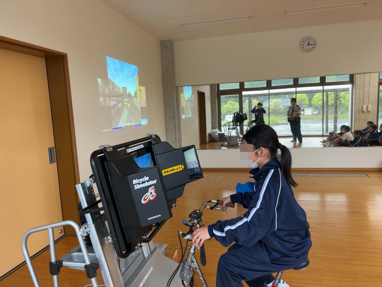 金曜日午前の「交通安全教室」では、淡路警察署と淡路市危機管理課の方々を講師に、自転車の安全な乗り方などを学びました。自転車事故の危険性についてDVDを視聴し、さらに自転車シミュレーターを使い生徒たちが実際に乗車して、ご指導いただきました。乗りなれている自転車も、気をつけていないと他者をケガさせたり、自分も危険なことや大きな事故につながることがあるんだと生徒たちも実感したようです。今後の登下校に生かして安全に自転車に乗ってほしいものです(^^♪