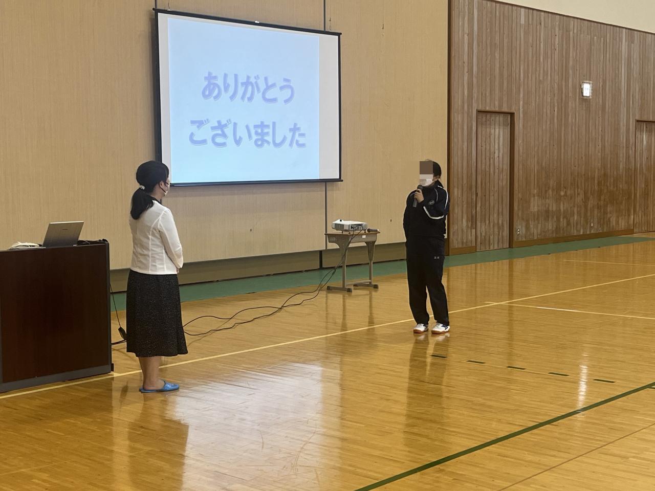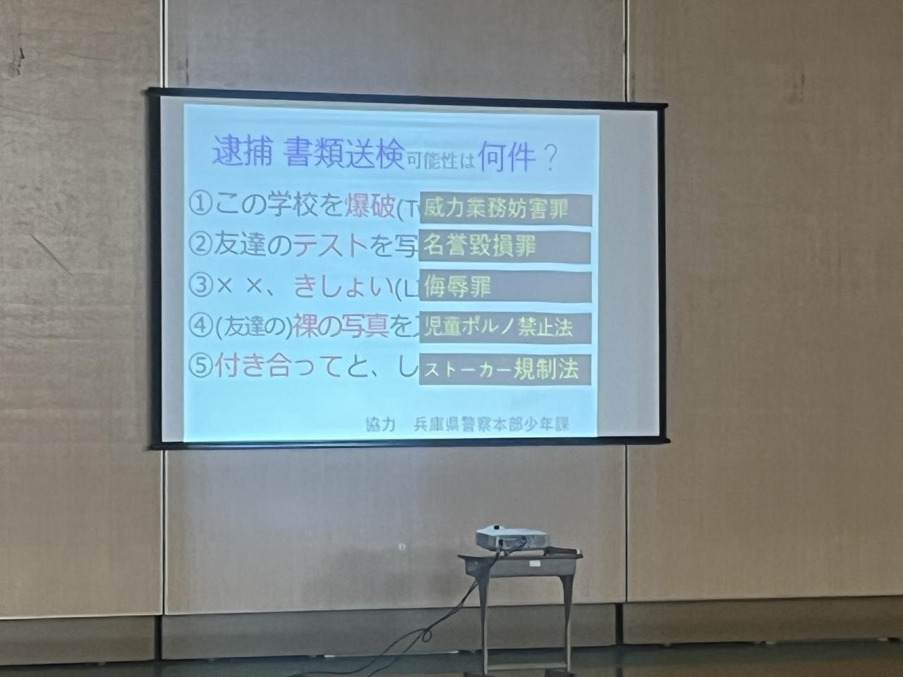本日、6校時にアリーナで全校生が情報モラルについて学びました。甲南女子大学の冨田幸子先生を講師にお招きして、ネットの「使い方」についてご講話いただきました。ネットトラブルの具体的な事例をあげて、クイズ形式で生徒たちが考える時間もあり、有意義な時間となりました。