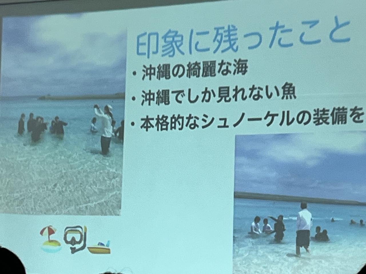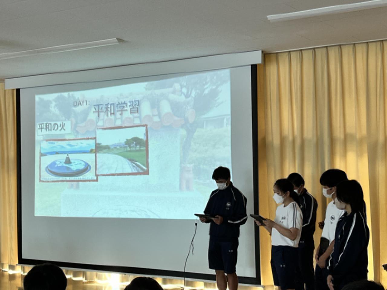 沖縄での活動の様子や平和について考えたことが発表され、それぞれのシーンを見ていると、修学旅行から今日まで既に5週間を経ているのですが、昨日の出来事のように思い出すことが出来ました。