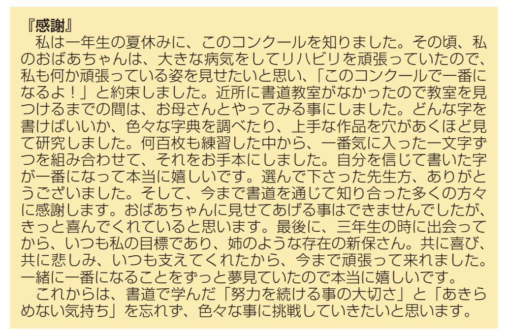 (1)独学で、一文字ずつあきらめずに、目標を定めて努力を重ねたこと