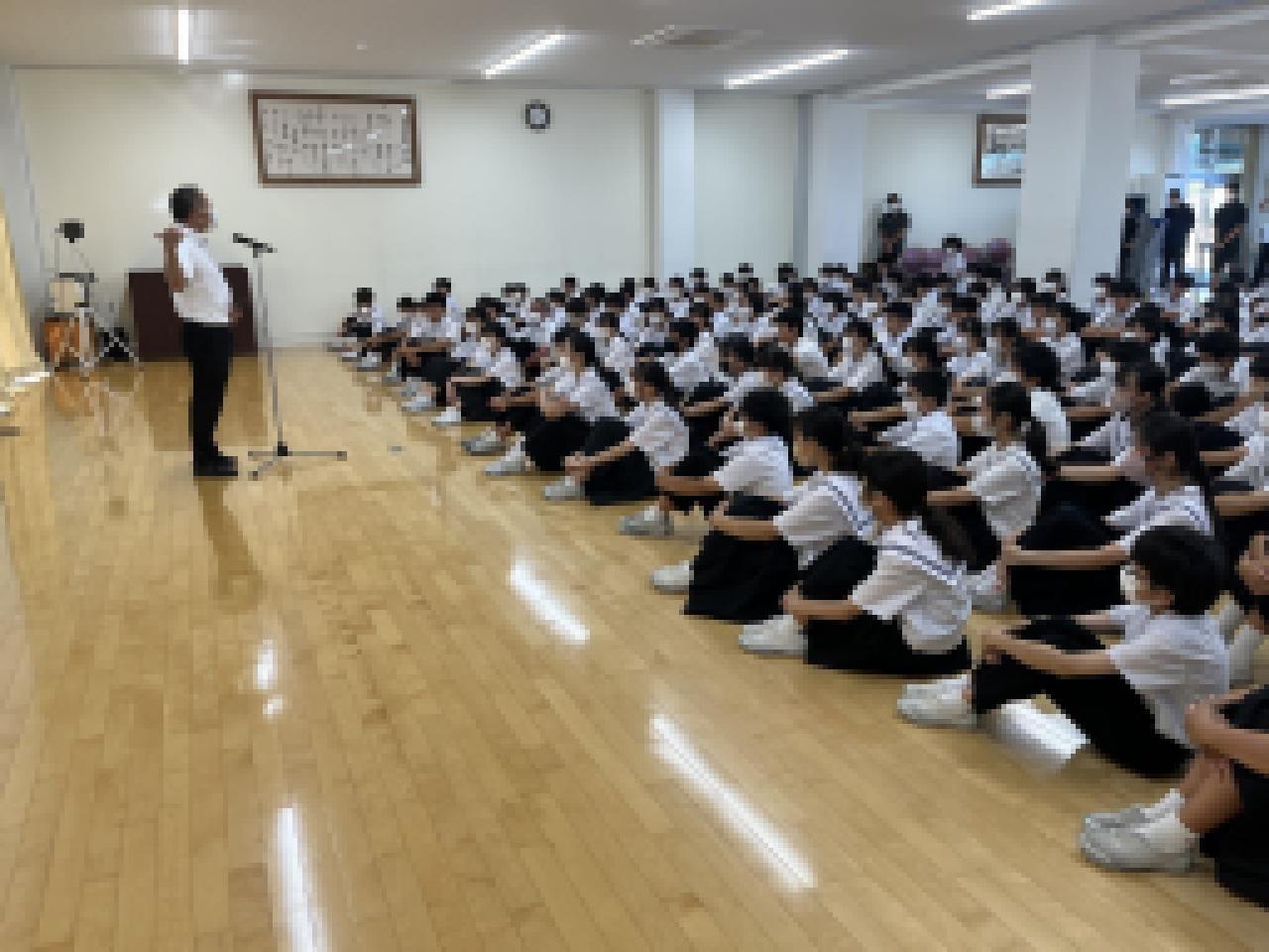 本日(7月20日)、一学期終業式を行いました。いつもはアリーナでおこなうのですが、今回は熱中症対策のため、空調設備のある集会室に集まりました。(二学期始業式も同会場の予定です)