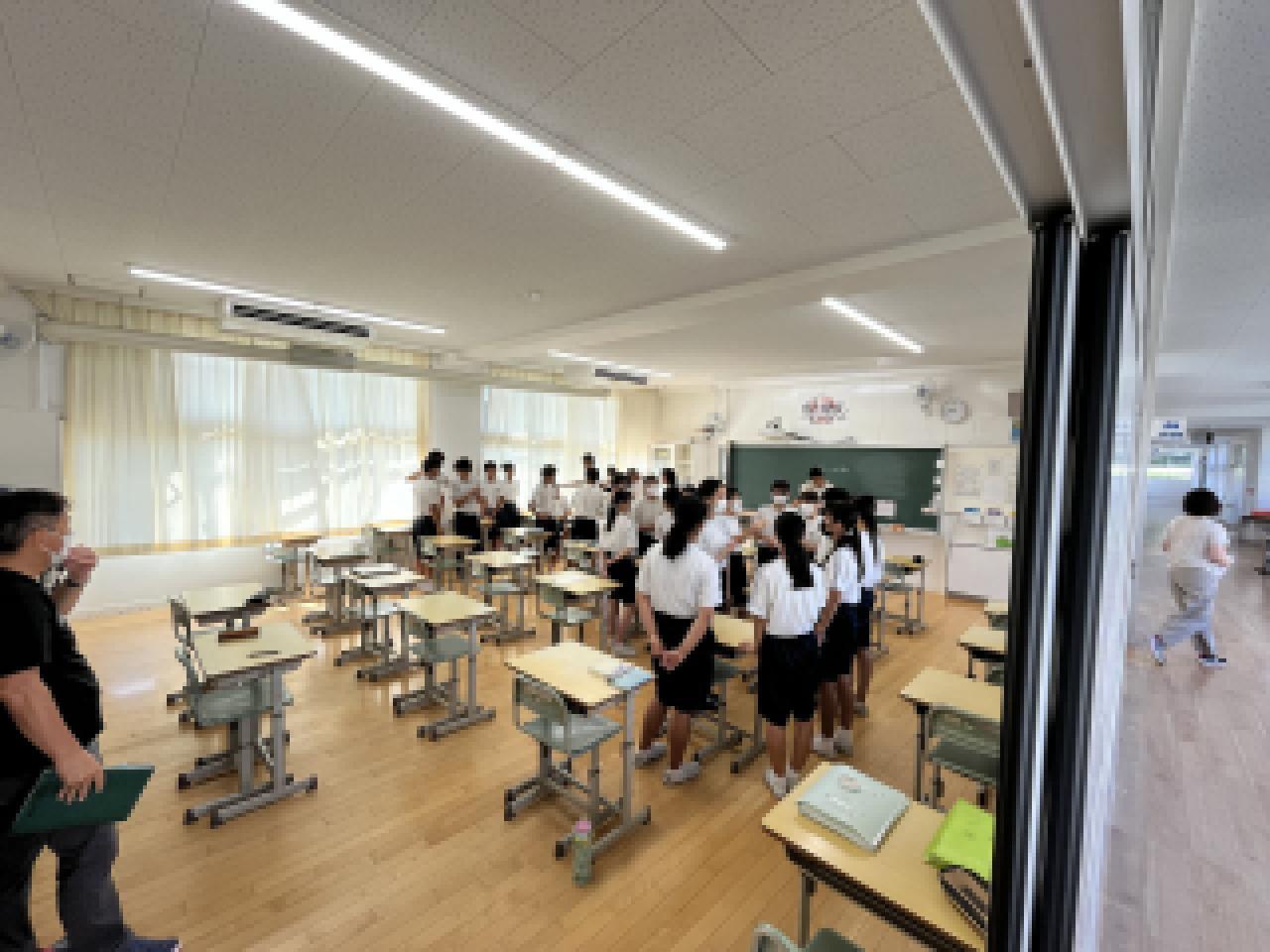 今日は3学年とも学年登校日が設定されていました。朝から厳しい暑さでしたが、生徒たちは汗だくで校舎の階段を駆け上っていました。
