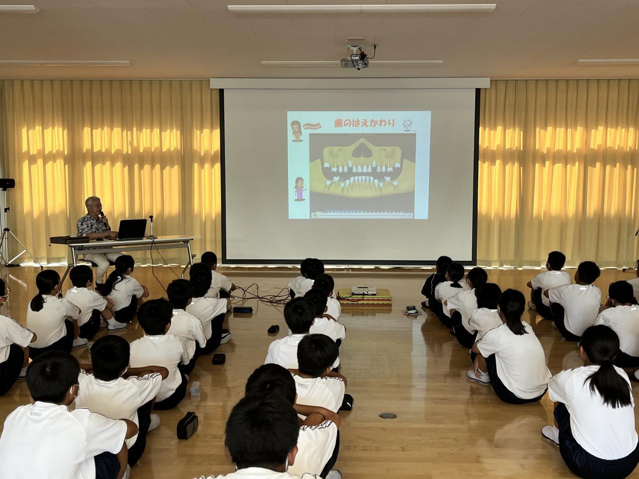 1年生は歯科医の元津先生にご来校いただき、歯科健康教室を開催。わかりやすい動画を用いながら虫歯予防についてなど詳しく学ばせていただきました。