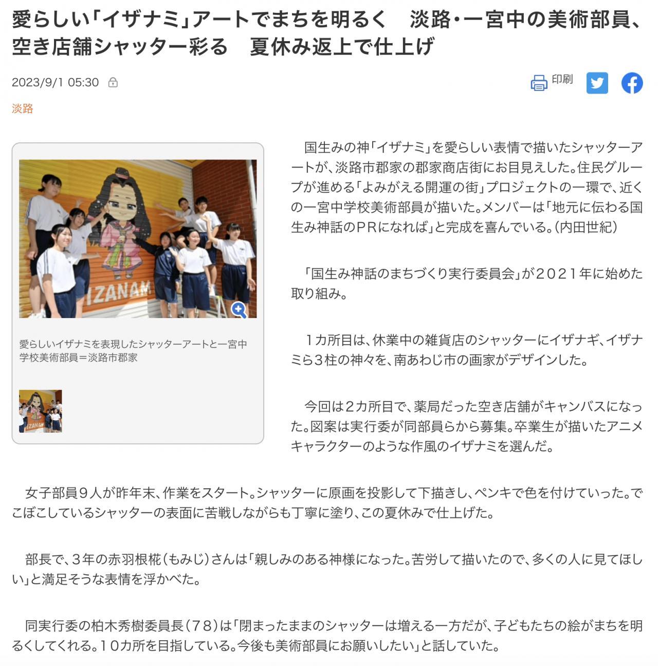 〜〜〜 これ以降、神戸新聞(令和5年9月1日・朝刊 淡路版)より 転載します 〜〜〜