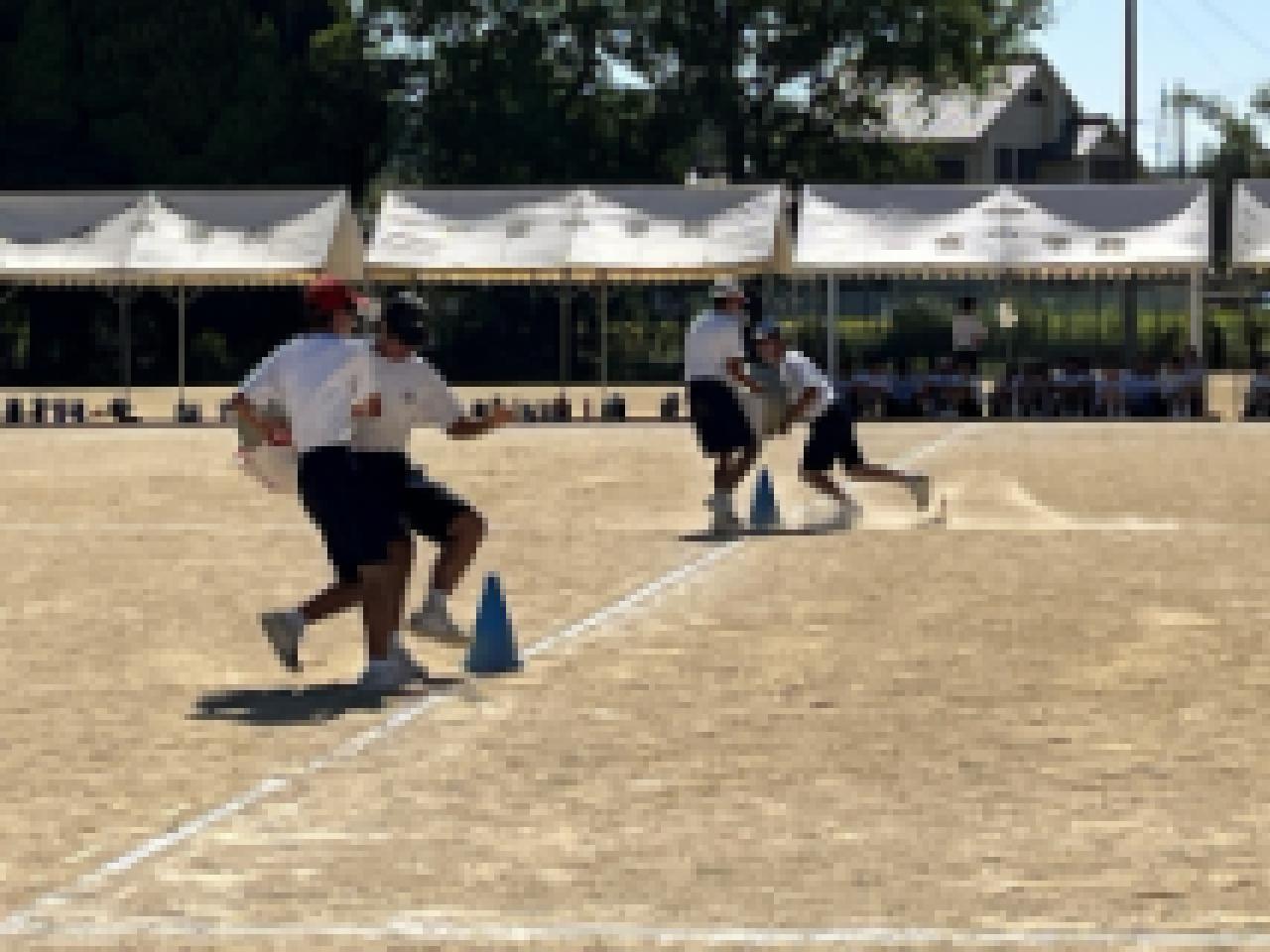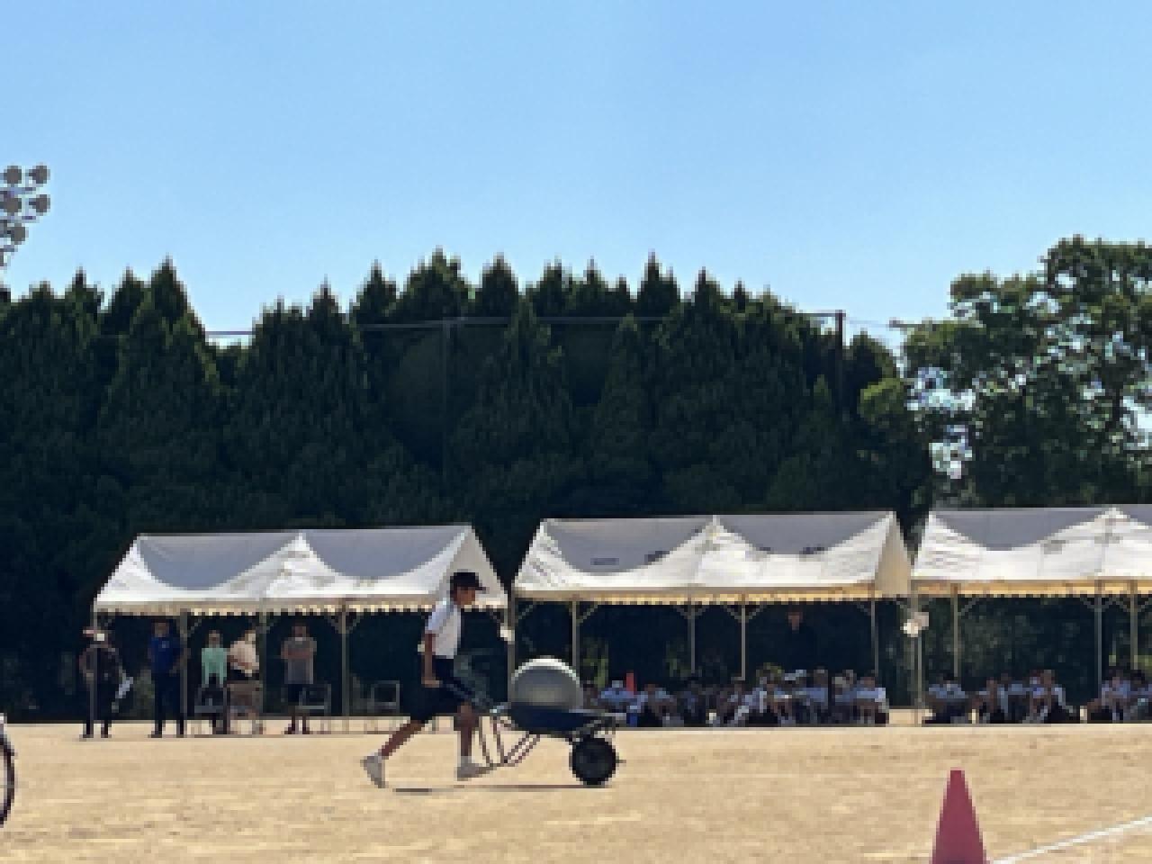 〇1年生:1年生の学年競技は「ま・わ・れ」です。車輪のある乗り物を用意しているのですが、競技者には自身がクジを引くまでどの乗り物で出走するのかわからない!という前代未聞?のルール!楽しそうに競技する姿は、とても微笑ましく感じました。