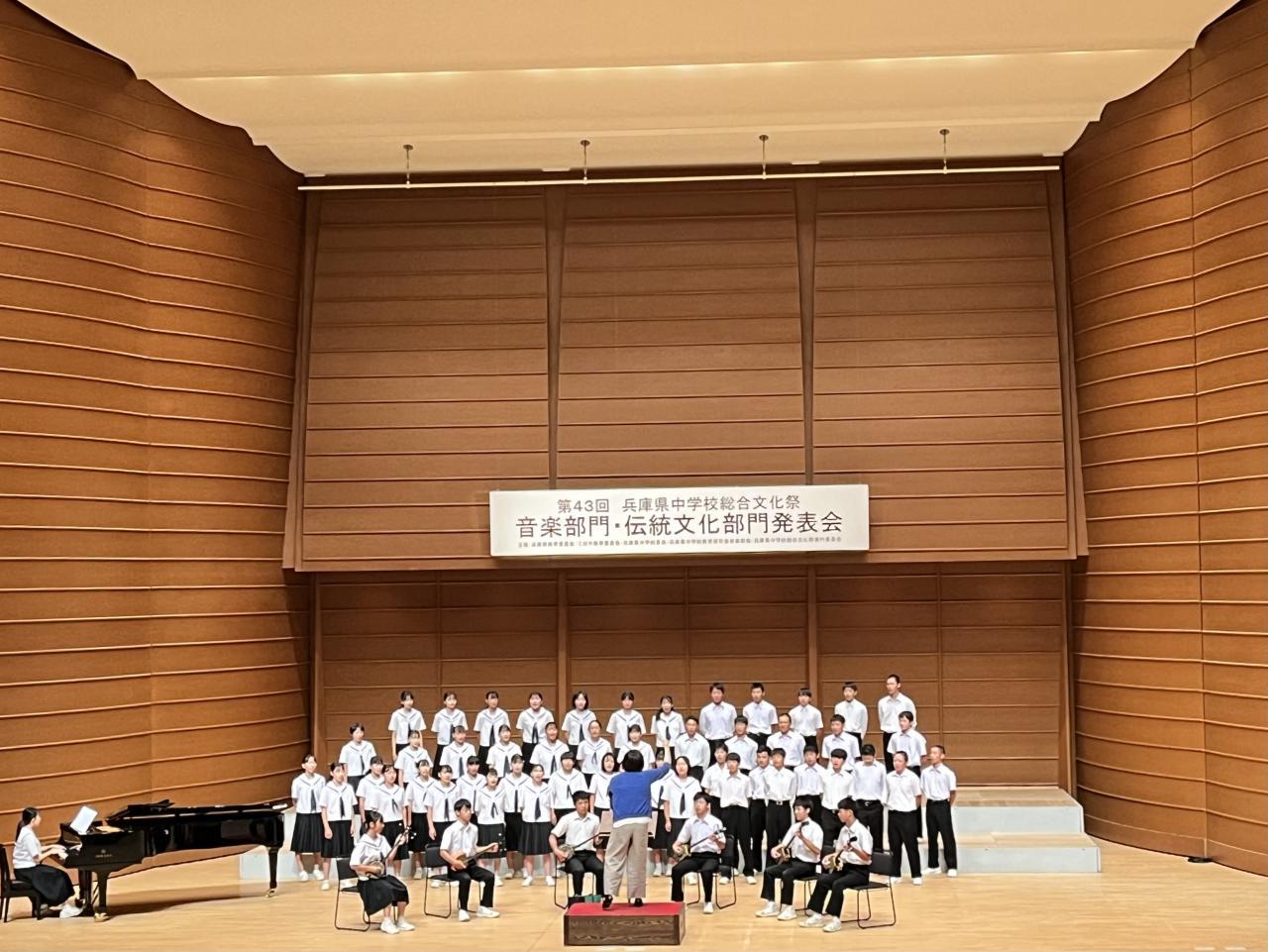 本日(10月6日)、3年生は淡路地区の代表として三田市・郷の音ホールで開催された「第43回兵庫県中学校総合文化祭 音楽部門・伝統文化部門発表会」に出演してきました。