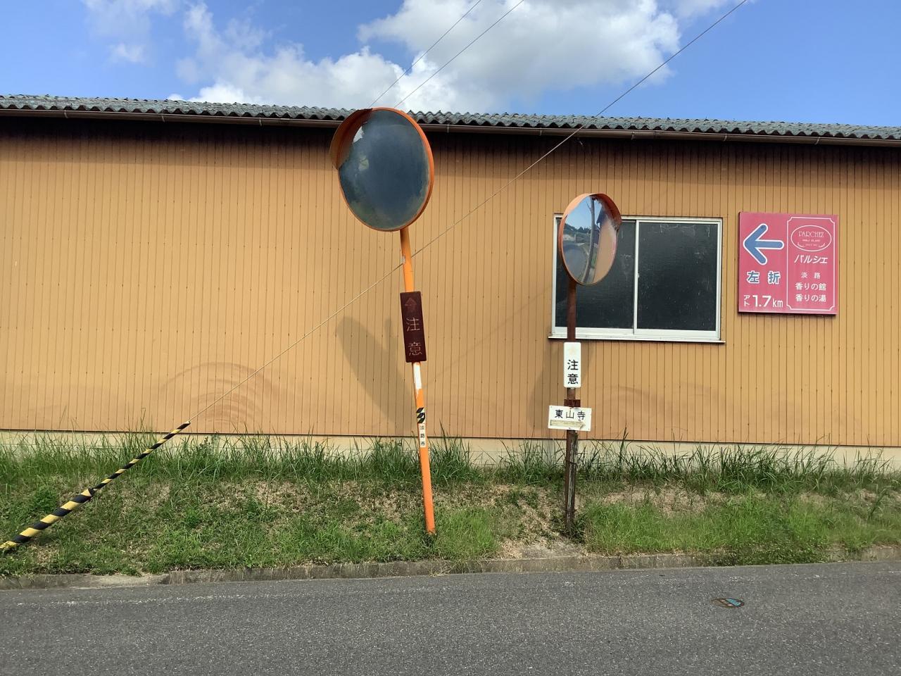 2)R5年度要望:いざなぎ農園前の三叉路:県道464号尾崎志筑線とクロスする地点:尾崎→志筑のカーブミラー