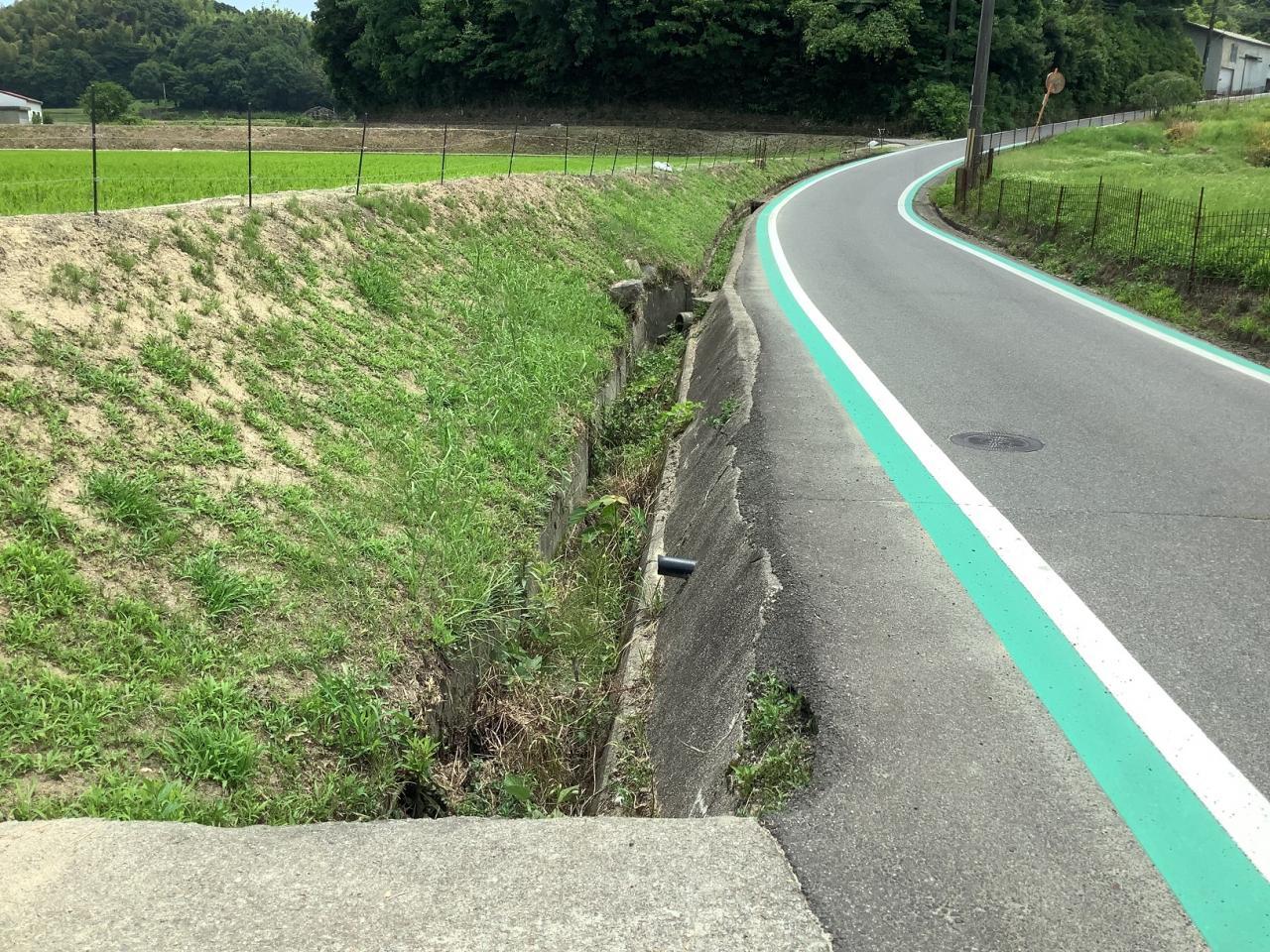 1)R4年度要望箇所:いざなぎ農園から学校へ向かう道:路肩が危険であるため、注意喚起できるよう改善を図った。