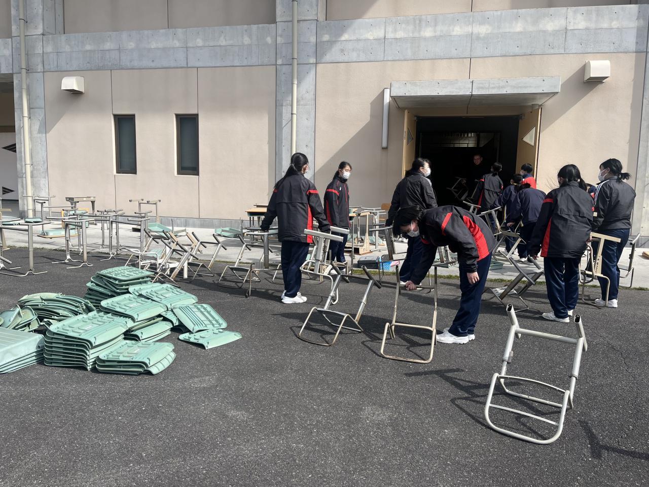 <先週のこと>3月8日金曜日の5&6校時には、3年生が愛校作業に取り組んでくれました。学び舎への感謝の気持ちを込めて日頃の清掃では手が回らないところを念入りに掃除したり、古くなった机の分解を行いリサイクルに出す準備をしたりと、大変な作業にあたってくれました。おかげで今週は学校に「すっきり感」が漂っています。(^^♪