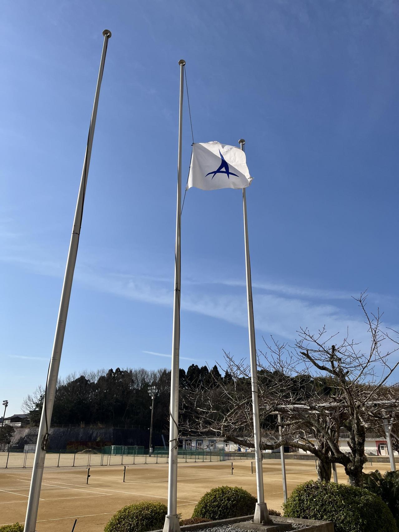 2024.3.11 本校ではグラウンドの国旗掲揚柱に半旗を掲揚しまして哀悼の意を表しています。生徒たちは能登での大地震に対して速やかに募金活動に取り組んでおり、防災意識を高く持って生活しているところです。今日、あらためて東日本大震災を見つめ直し、自分の学びにしてくれればと願っています。
