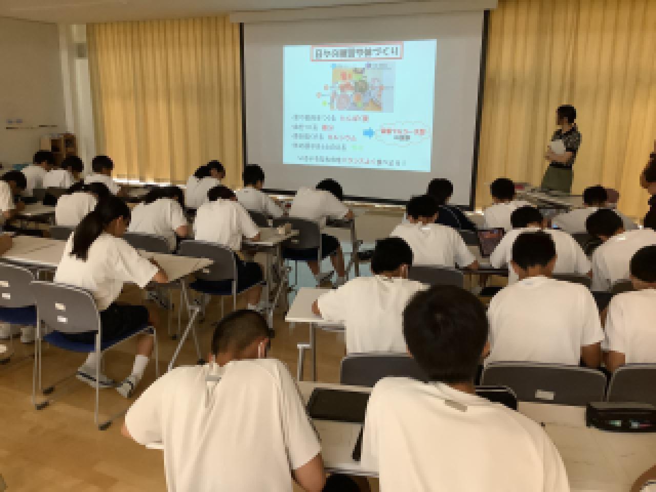 7月4日(木)5時間目は1年生、そして本日7月11日(木)の3時間目は2年生が、講師先生をお招きして食育講話を行いました。