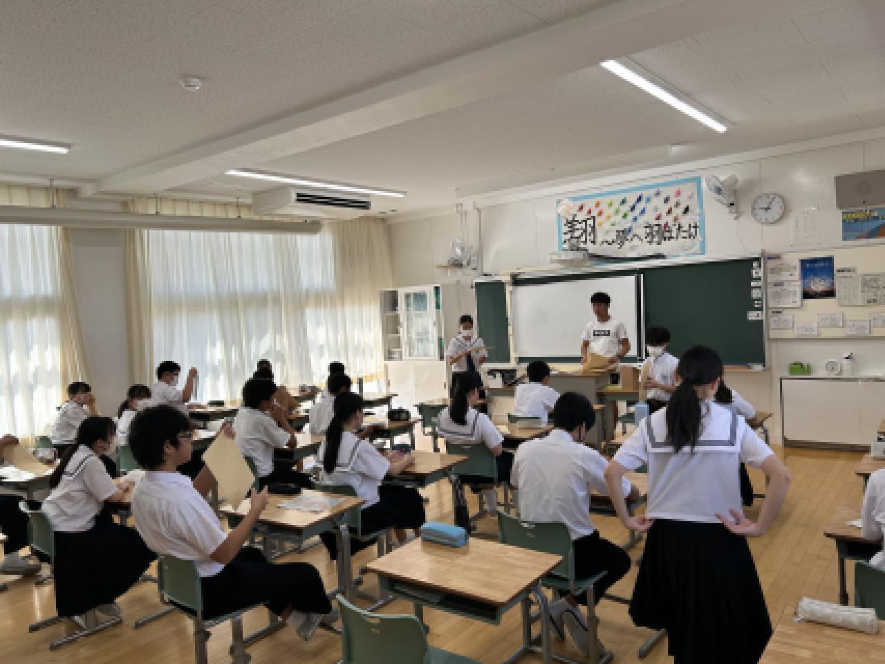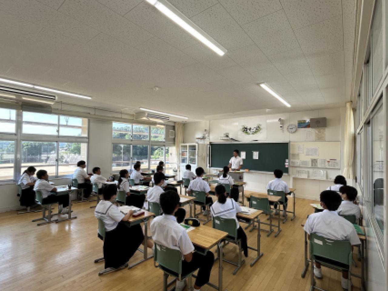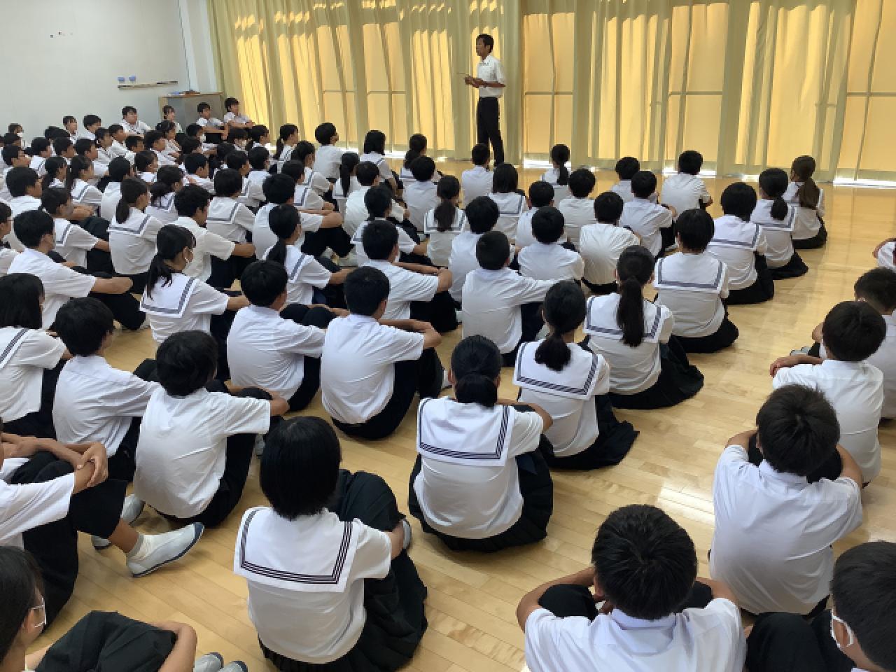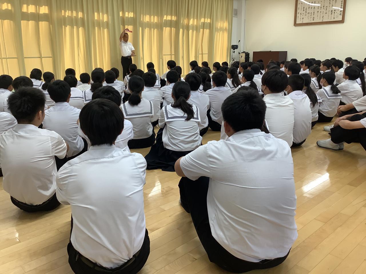 このあと校歌斉唱を行い、生徒指導担当の先生から夏休みの生活上の注意を受けました。特に出会い系サイトや、SNSの使い方に注意するよう話がありました。