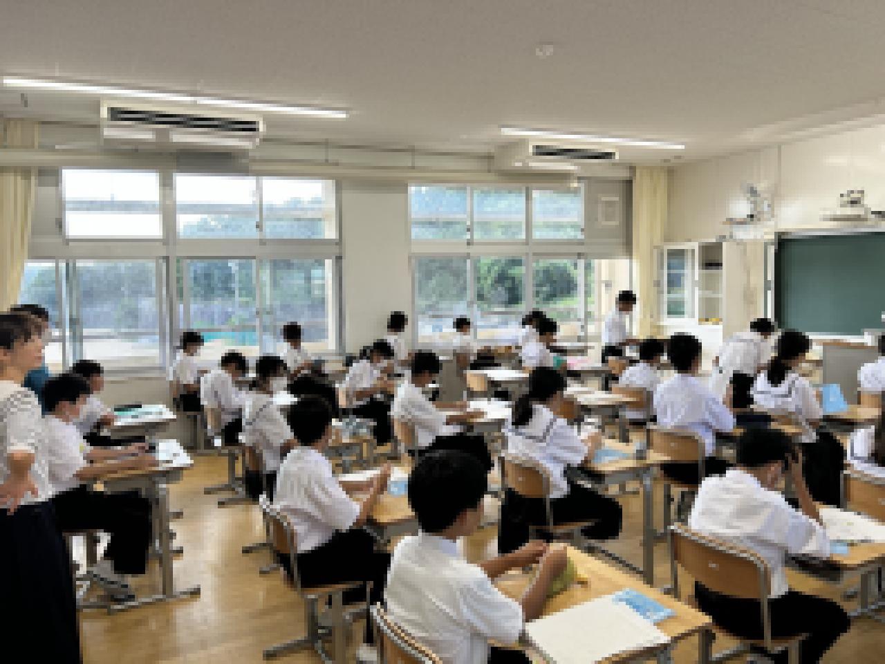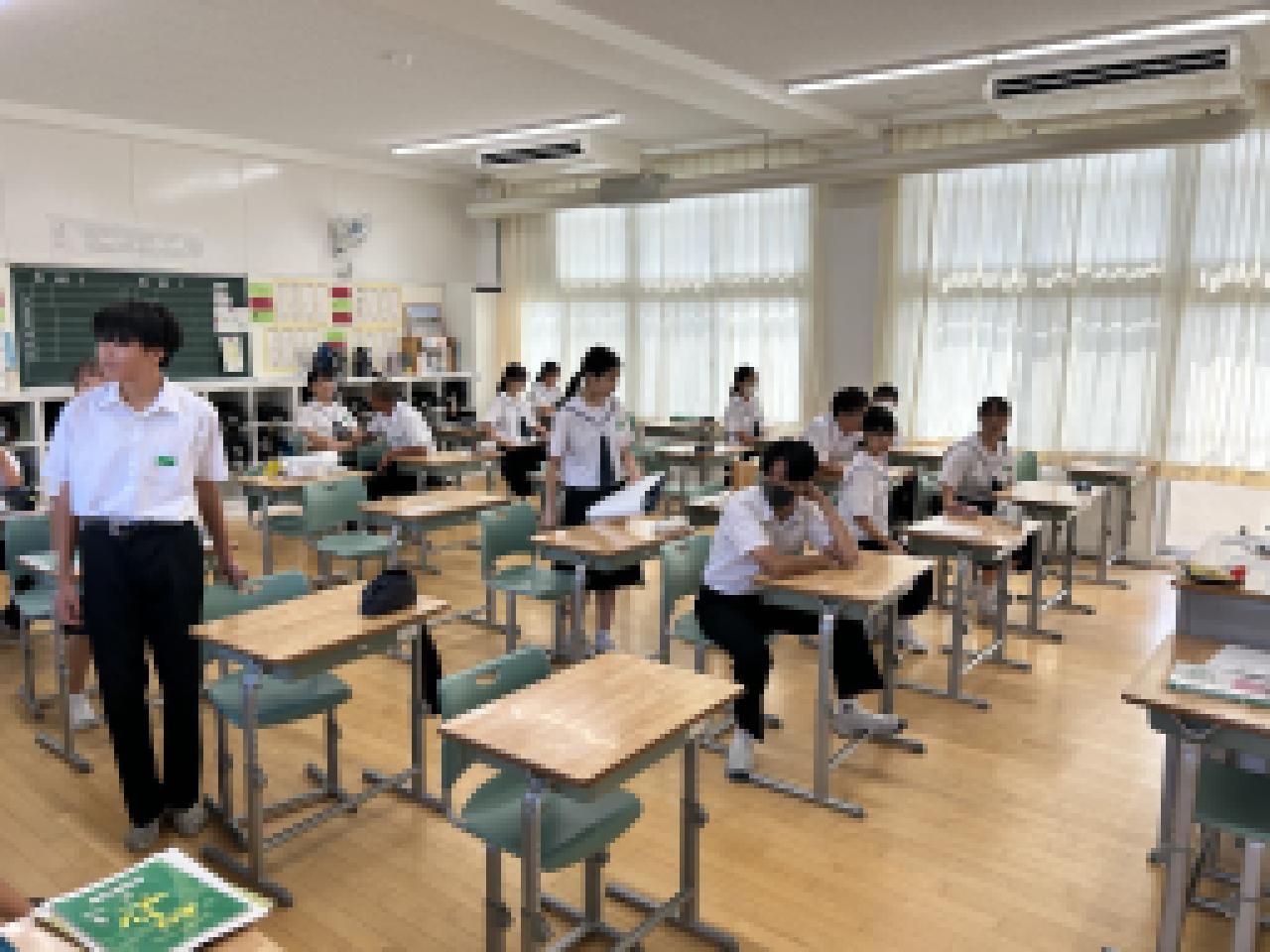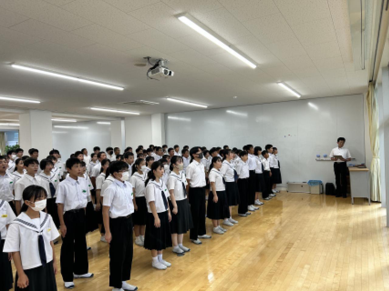 学級学活においては宿題の提出を行いましたが、その間も嬉しそうに仲間と会話を交わす生徒たちの表情がとても明るく、光り輝いて見えました。1年間で最も長い2学期ですが、充実した日々になるなと確信したところです。保護者の皆様、2学期もよろしくお願いいたします。