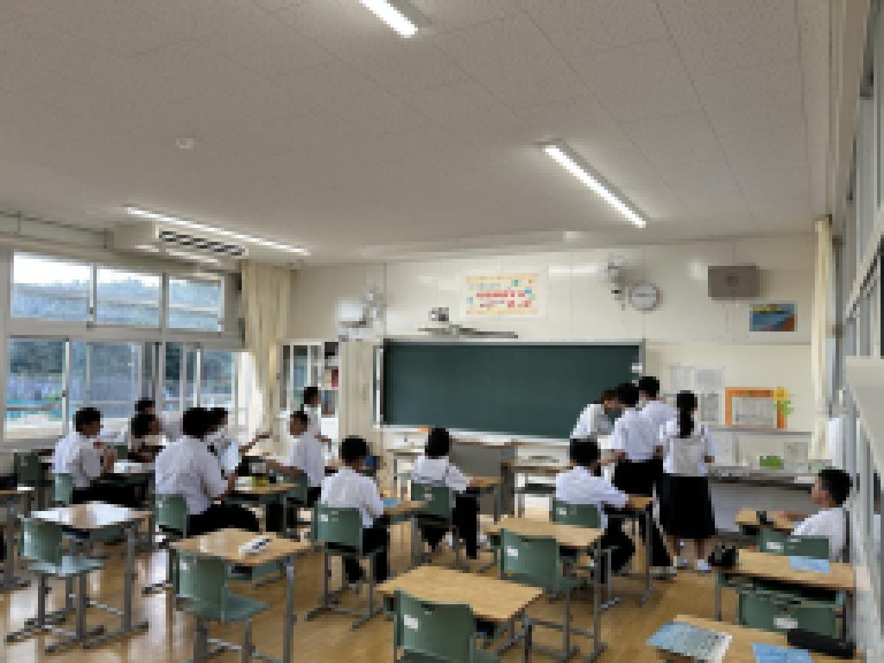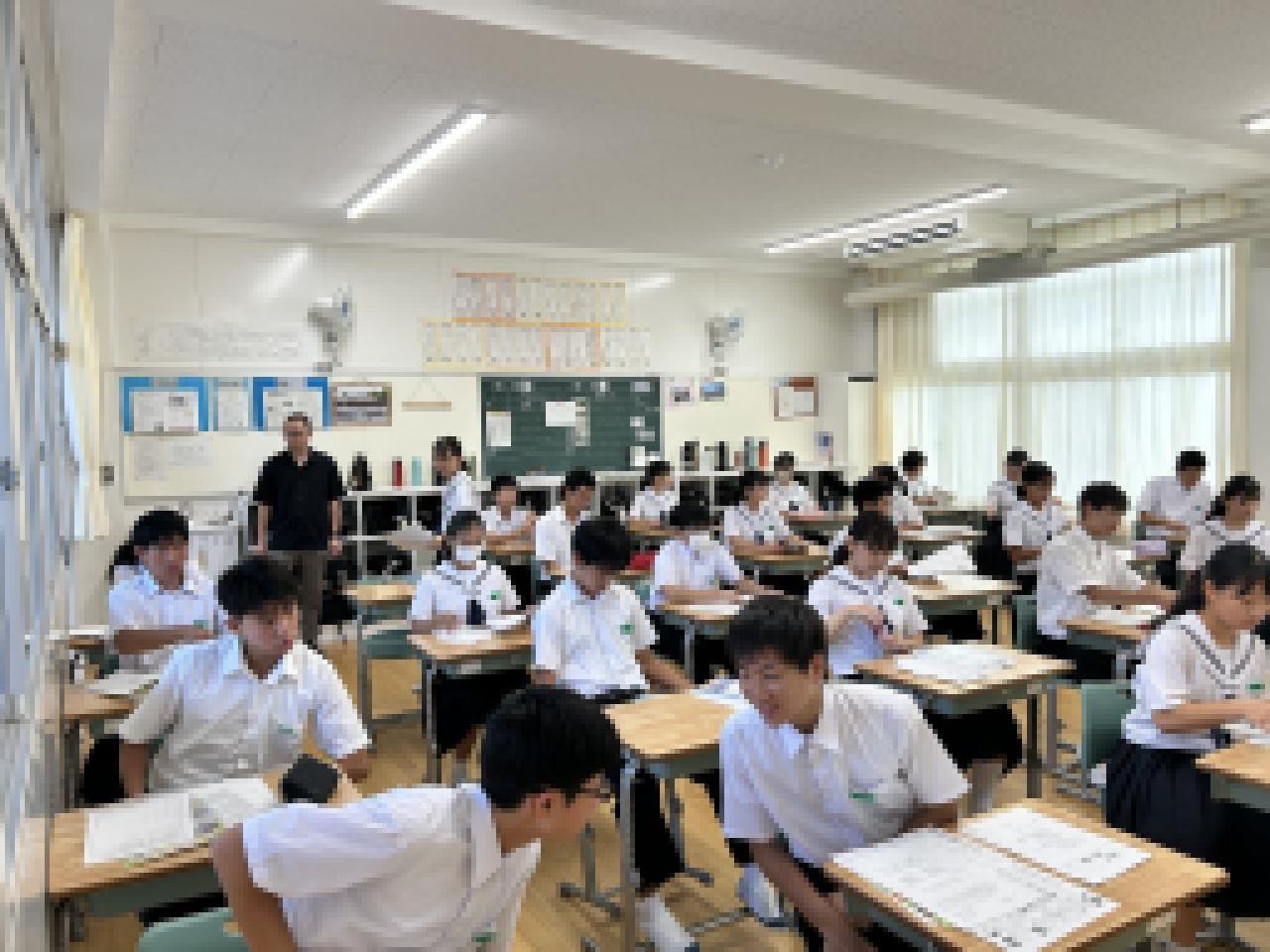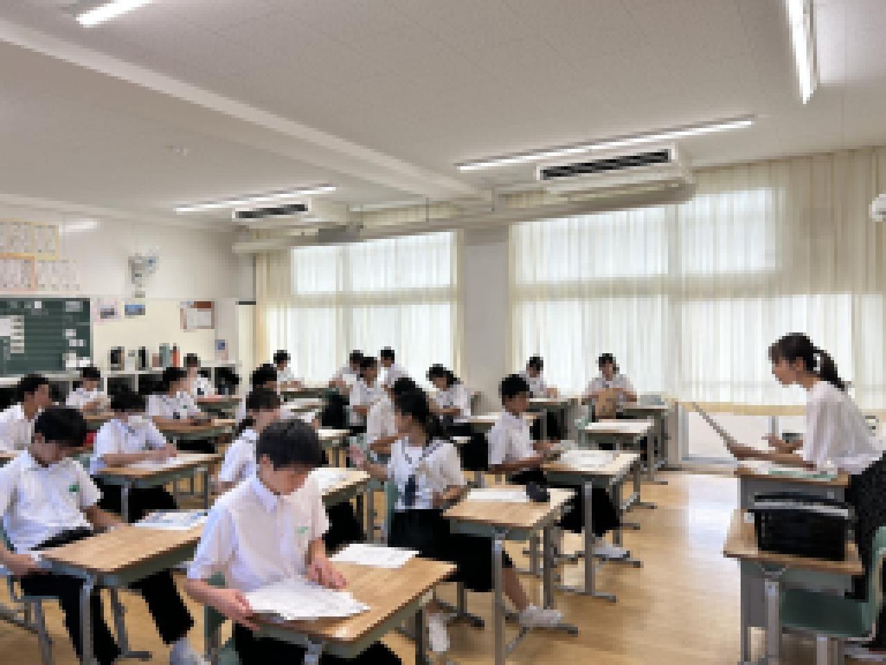 学級学活においては宿題の提出を行いましたが、その間も嬉しそうに仲間と会話を交わす生徒たちの表情がとても明るく、光り輝いて見えました。1年間で最も長い2学期ですが、充実した日々になるなと確信したところです。保護者の皆様、2学期もよろしくお願いいたします。