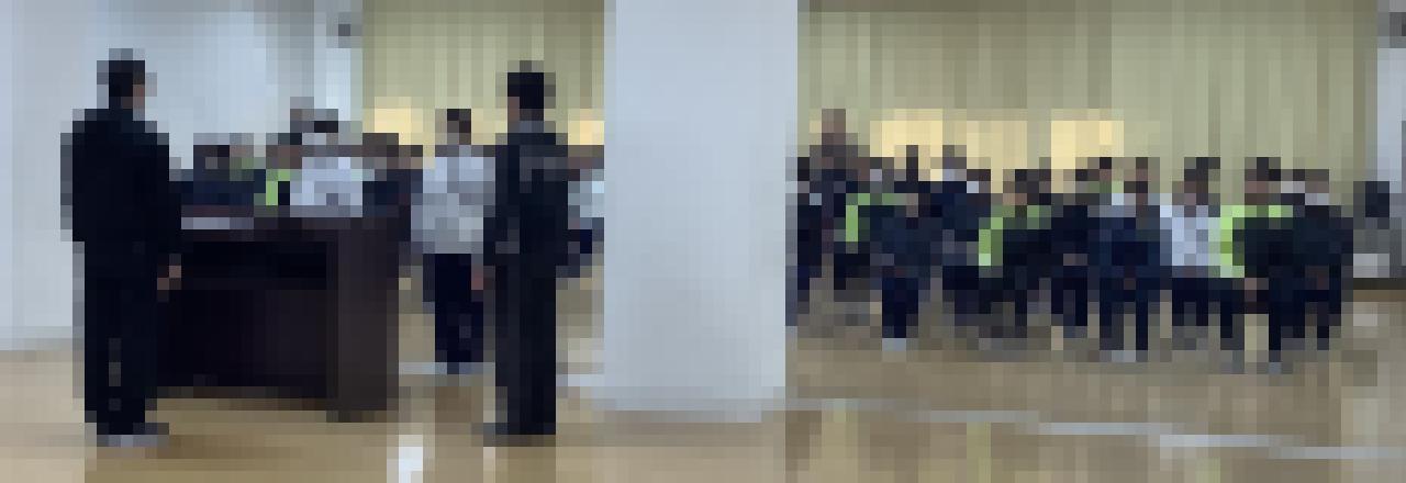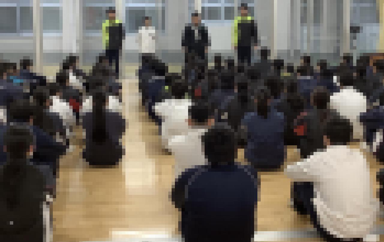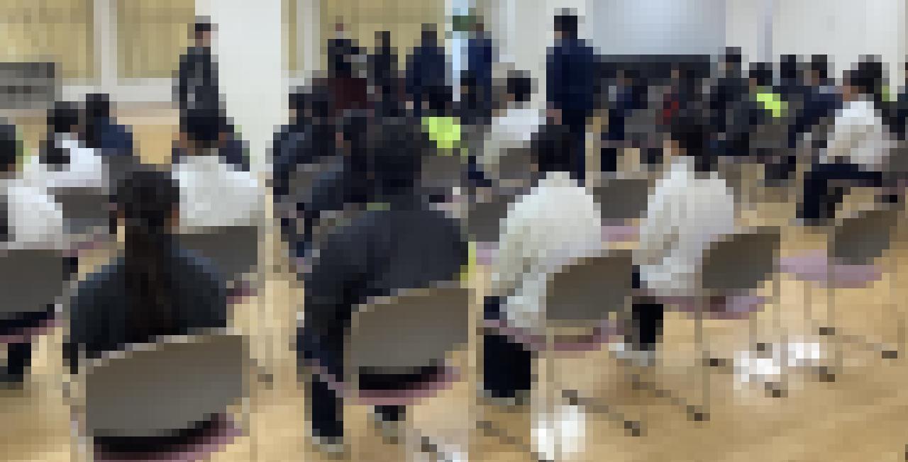 月曜日の全校集会では、3年生生徒会役員4名の退任式が行われました。