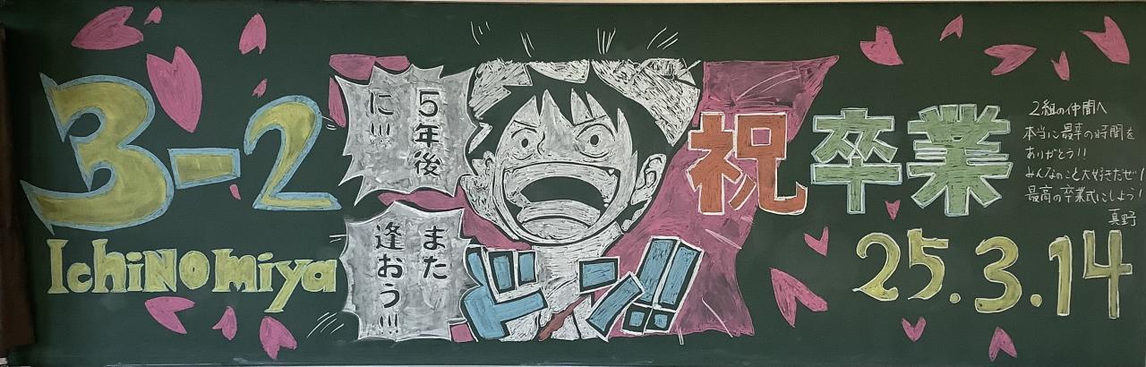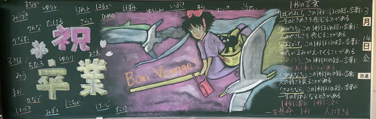 3年生になって、1年間学んできたこの黒板。最後は担任の先生からのメッセージでした。