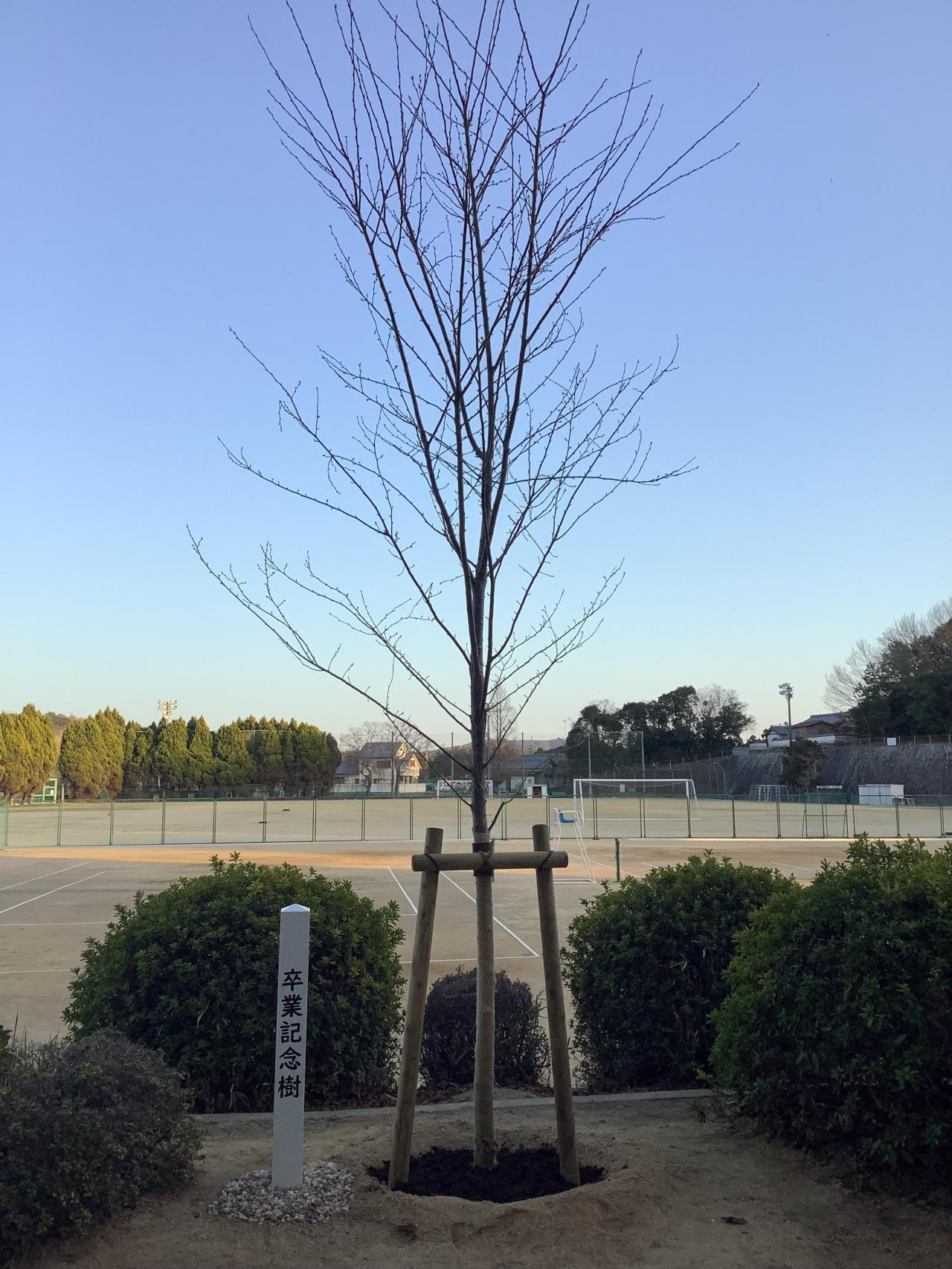 卒業記念品として寄贈していただいた桜の木です。一宮中学校はお正月に伊弉諾神宮参拝の駐車場になるので、他の学校に比べてこの木を見る機会は多いです。毎年大きくなっていく桜の木を見ていってください。