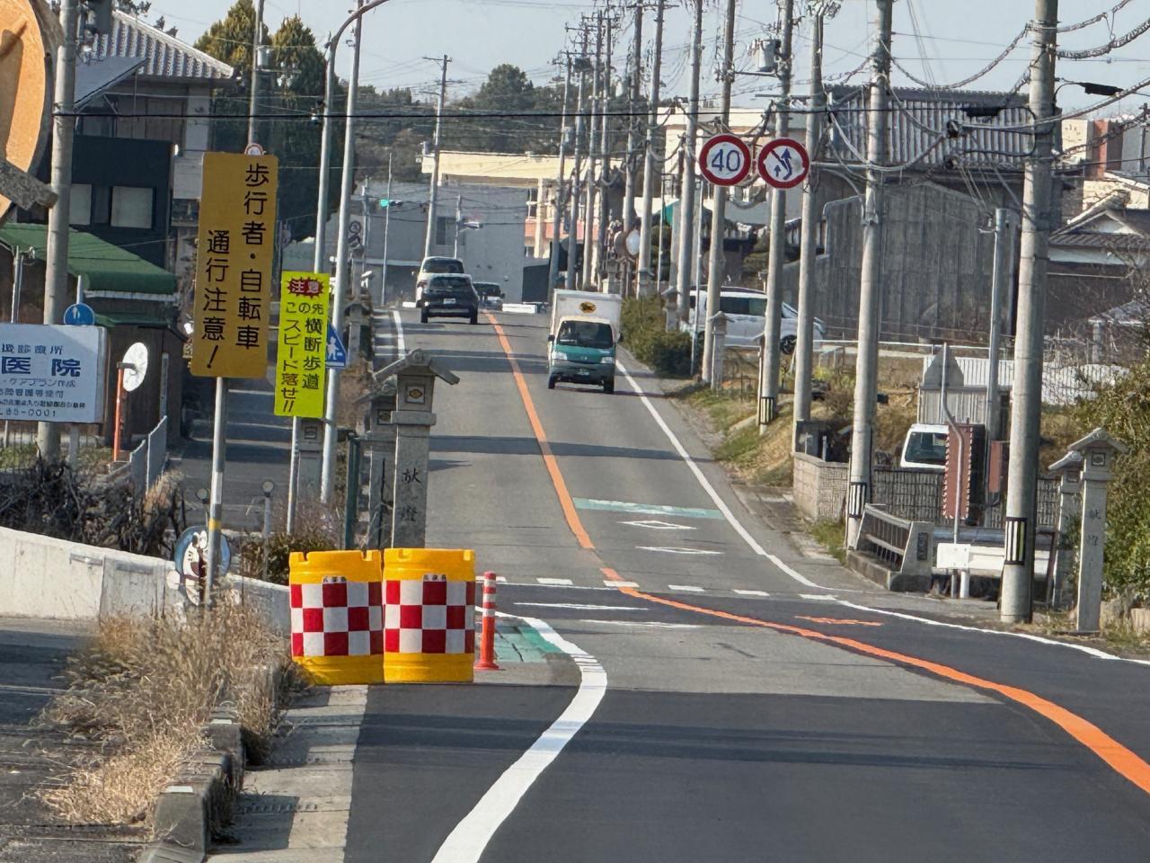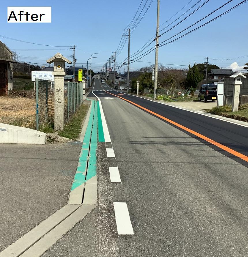 この度、市教委から連絡があり、一宮中の正門前を通る県道(県道88号線 志筑郡家線)のうち、井手のバス停 から向田医院 の看板まで の車道を改良工事が完了いたしました。下に詳細をお知らせします。