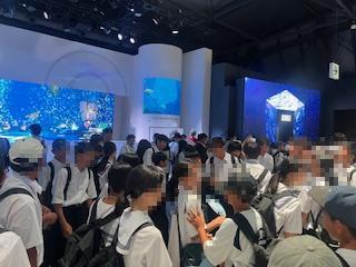 17日には、大阪・関西万博へ全校生ででかけました。大屋根リングの大きさに圧倒されたり、ミャクミャクに出会ってテンションが上がったり、生徒たちの笑顔がはじけました。しかし、あまりの人の多さや各パビリオンの行列には、驚くばかりでした。
